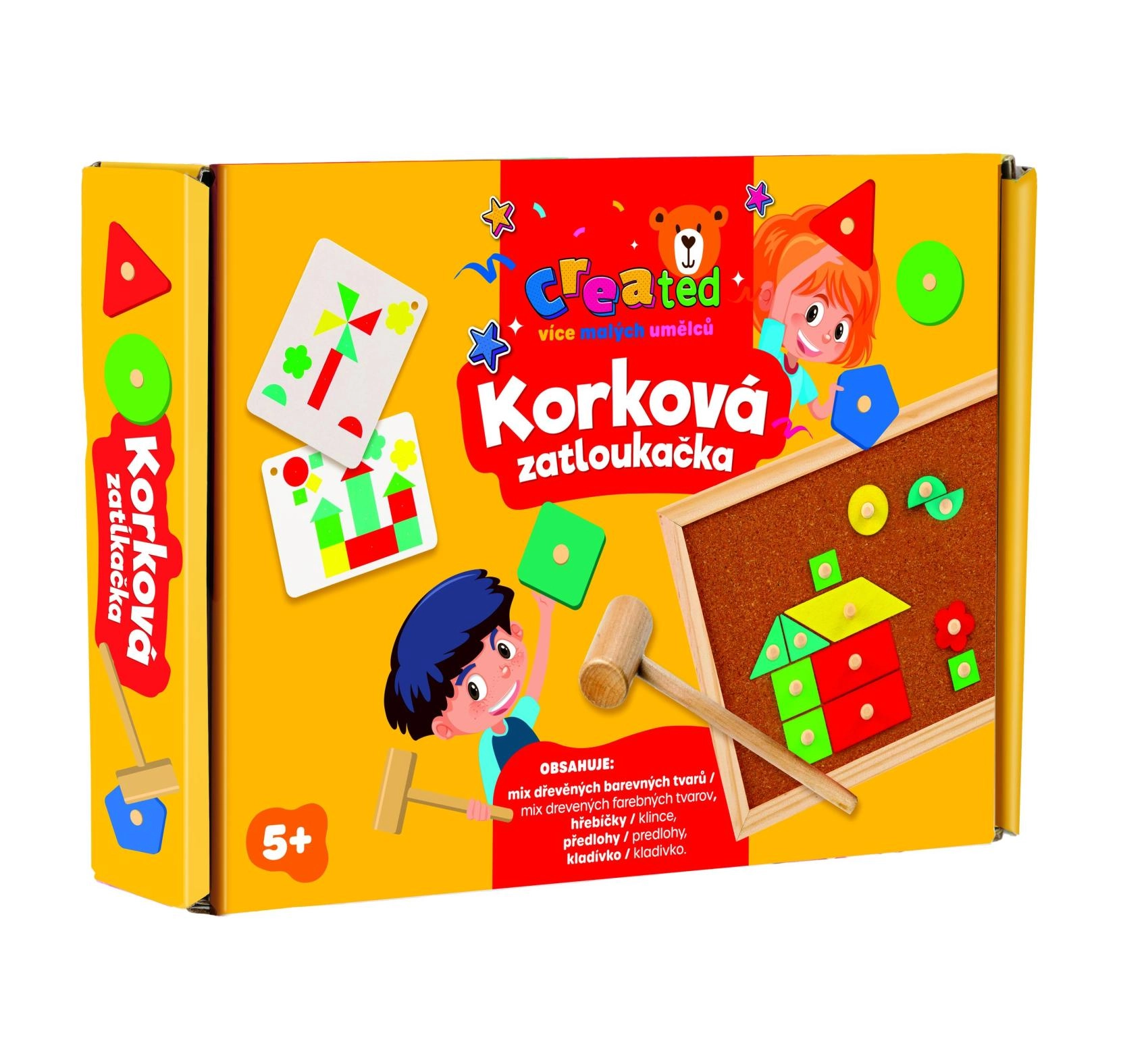 - Όλα σε ένα: ξύλινα σχήματα, σφυράκι, καρφάκια και φελλένια βάση.
