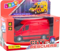 Ρεαλιστικό μεταλλικό βαν κλίμακας 1:32 σε έντονο κόκκινο που θα ενθουσιάσει τους μικρούς λάτρεις των αυτοκινήτων. Προσφέρει ανοιγόμενες πόρτες, φωτεινά και ηχητικά εφέ και είναι έτοιμο για χρήση χάρη στις μπαταρίες στη συσκευασία. Εξαιρετική επιλογή για παιχνίδι αλλά και για συλλεκτική προθήκη.