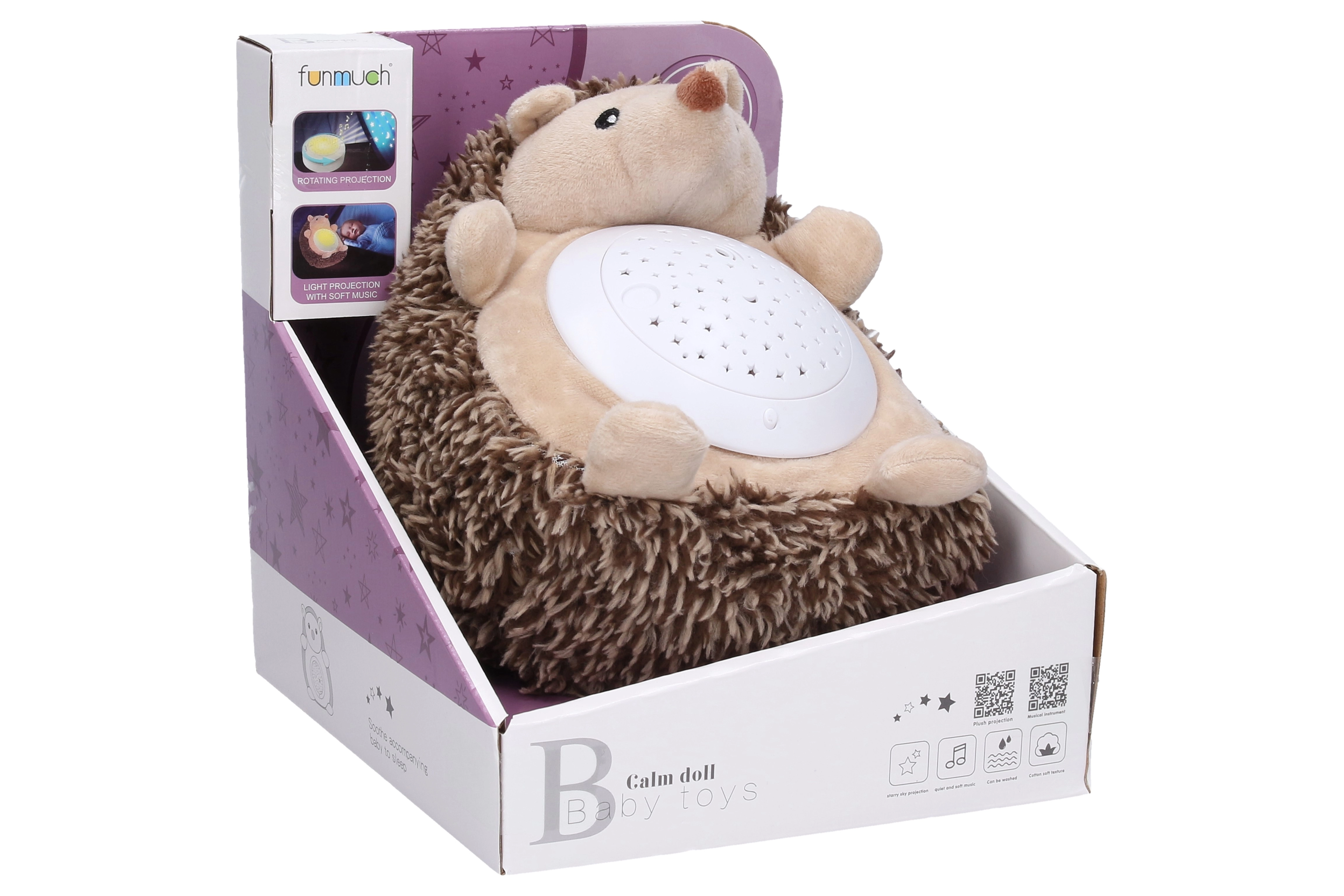 Αυτός ο απαλός σκαντζόχοιρος ύπνου είναι υπέροχος σύντροφος για κάθε ώρα ύπνου. Ο προβολέας στην κοιλίτσα φωτίζει αστεράκια στον χώρο, αναπαράγει νανούρισμα και ταυτόχρονα περιστρέφεται απαλά, δημιουργώντας μια χαλαρωτική ατμόσφαιρα για ανενόχλητο ύπνο.
