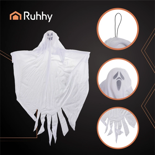 Δημιουργήστε στο σπίτι και στον κήπο μια παγωμένη ατμόσφαιρα με το σετ τριών κρεμαστών φαντασμάτων RUHHY ύψους 75 cm. Το ελαφρύ, λευκό ύφασμα κινείται με τον άνεμο και δημιουργεί την αίσθηση αιωρούμενων παρουσιών. Κάθε φάντασμα έχει διαφορετική έκφραση, κάτι που τα κάνει ακόμη πιο αυθεντικά. Ιδανικά για το Halloween, θεματικά πάρτι, διακόσμηση σπιτιού, κήπου και καταστημάτων και χάρη στην εύκολη ανάρτηση η εγκατάσταση γίνεται σε λίγα λεπτά.