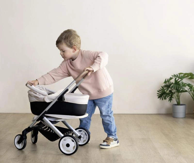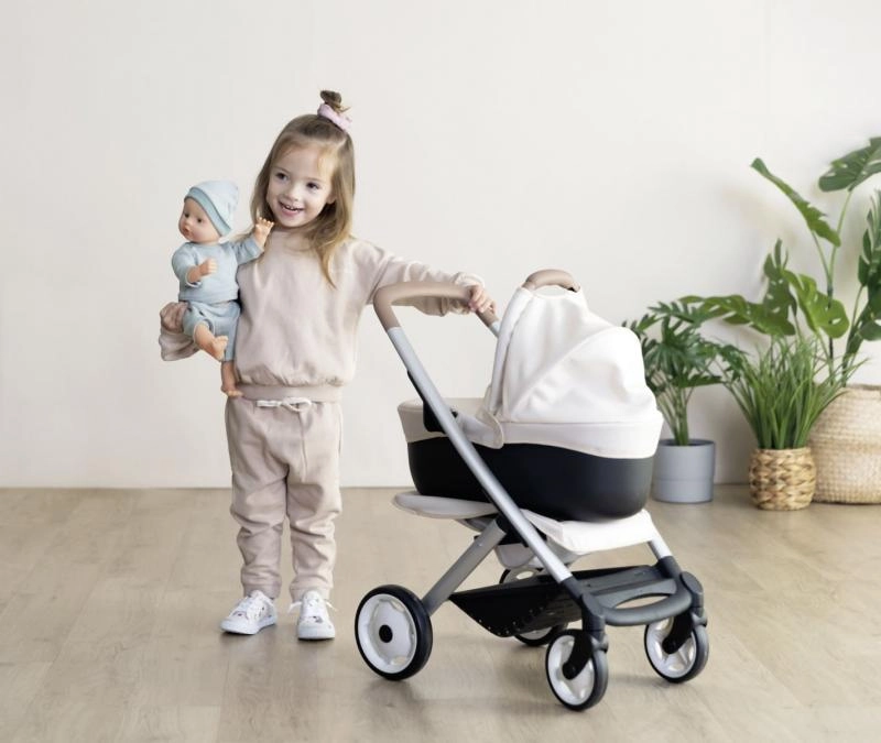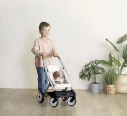 Ανακαλύψτε ένα μοντέρνο και πολυχρηστικό καροτσάκι για κούκλες που εξελίσσεται με το παιδικό παιχνίδι. Χάρη στον έξυπνο σχεδιασμό, το μετατρέπετε σε δευτερόλεπτα από βαθύ πορτ-μπεμπέ σε αθλητική εκδοχή. Το επάνω μέρος αφαιρείται εύκολα ώστε να μεταφέρετε το μωρό σε πρακτικό καλαθάκι – ιδανικό για βόλτες και για το παιδικό δωμάτιο.