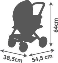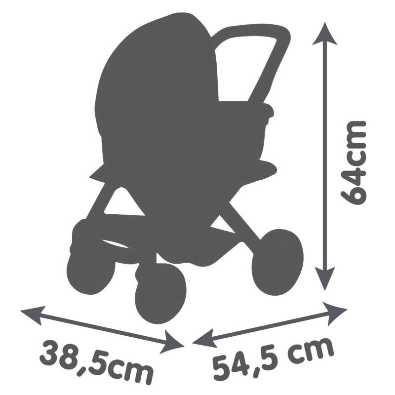 Στυλάτο καροτσάκι για κούκλες 3 σε 1 με εναλλάξιμο πορτ-μπεμπέ και δυνατότητα γρήγορης μετατροπής σε αθλητικό καροτσάκι. Προσφέρει περιστρεφόμενους μπροστινούς τροχούς για εύκολο χειρισμό, αθόρυβη κύλιση χάρη στο αντιθορυβικό στρώμα των τροχών και εργονομική λαβή σε ύψος 65 cm. Τα καλύμματα από ανθεκτικό πλαστικό ύφασμα σκουπίζονται εύκολα με νωπό πανί. Κατάλληλο για κούκλες έως 42 cm.