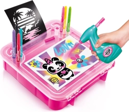 Ανακάλυψε τον κόσμο της ζωγραφικής με airbrush και δημιούργησε πρωτότυπα σχέδια οπουδήποτε! Αυτό το πλήρες σετ προσφέρει ό,τι χρειάζονται τα παιδιά από 6 ετών για εύκολο ψεκασμό χρωμάτων: 1 airbrush, 8 χρωματιστοί μαρκαδόροι, 10 στένσιλ και 10 φύλλα για δημιουργία. Η συμπαγής συσκευασία είναι ιδανική για ταξίδια και ενισχύει την δημιουργικότητα και τη λεπτή κινητικότητα.