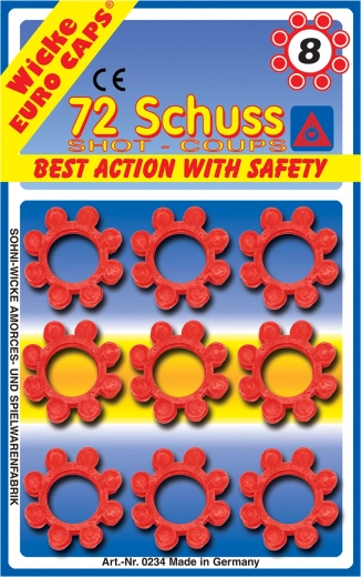 Στη συσκευασία θα βρείτε 9 κυλίνδρους, που συνολικά προσφέρουν 72 βολές. Οι κάψουλες είναι ιδανικές για παιχνίδι σε εξωτερικούς χώρους, γενέθλια και θεματικές μεταμφιέσεις.