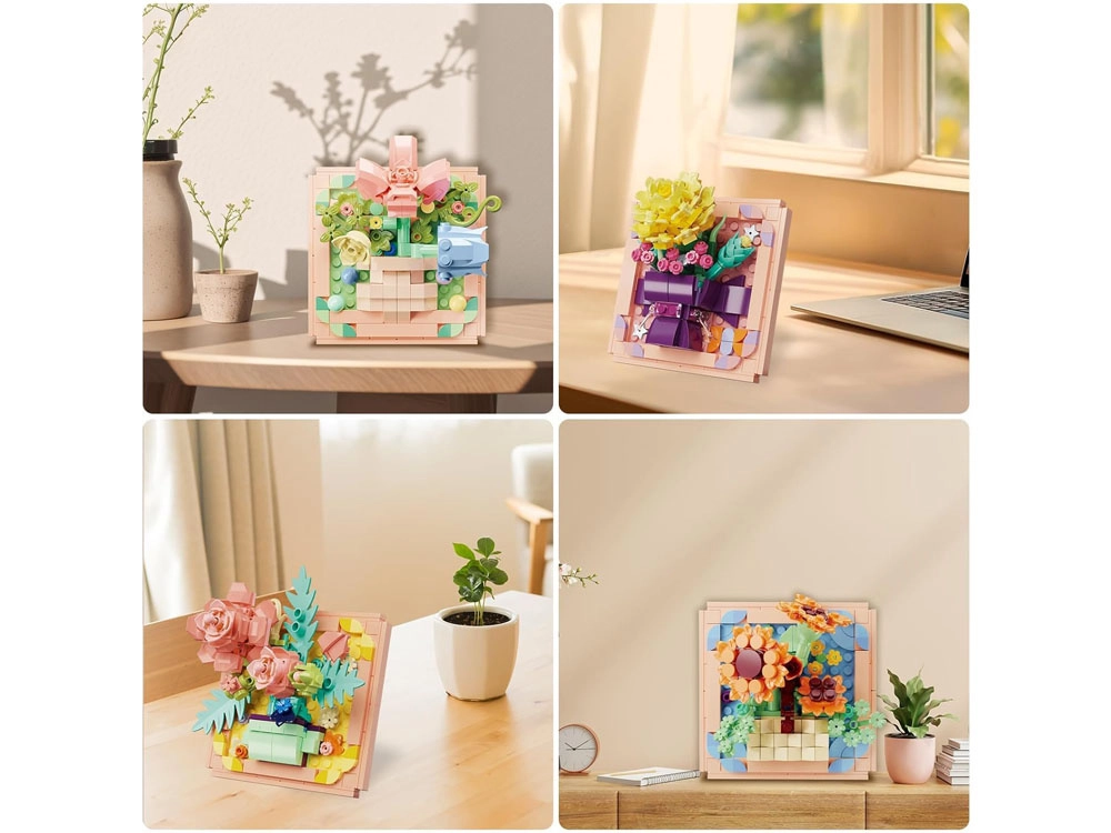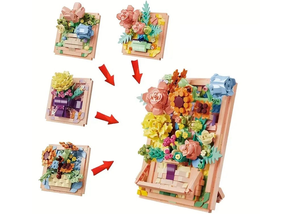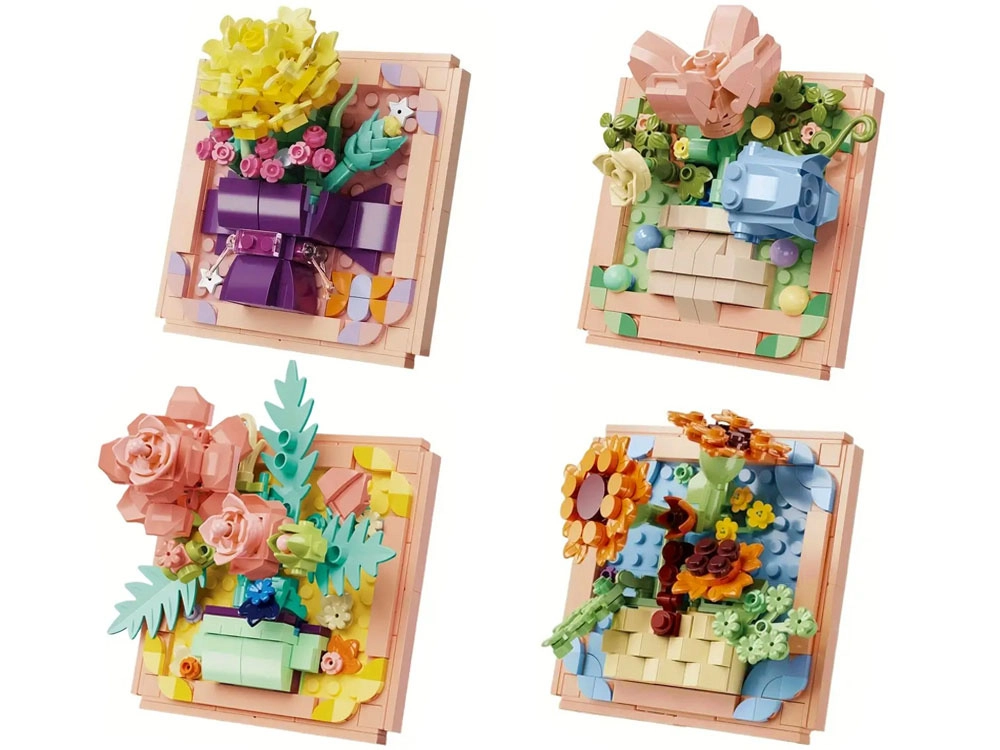Διαθέσιμα τέσσερα μοτίβα: Carnation (γαρύφαλλο), Rose (τριαντάφυλλο), Camellia (καμέλια) και Sunflower (ηλιοτρόπιο), το καθένα με διαφορετική χρωματική παλέτα και αριθμό κομματιών. Η συσκευασία περιλαμβάνει εικονογραφημένο οδηγό, ώστε η κατασκευή να είναι εύκολη και διασκεδαστική ακόμη και για αρχάριους. Επιπλέον, όλα τα μοτίβα μπορούν, αν το επιθυμείτε, να συνδυαστούν σε έναν μεγαλύτερο 3D πίνακα.