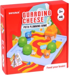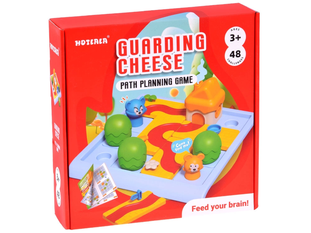 Χτίστε τη σωστή διαδρομή στο πλαίσιο με πλέγμα και οδηγήστε το ποντίκι (και σε υψηλότερα επίπεδα και τη γάτα) στο σπιτάκι με το τυρί. Στην απλούστερη εκδοχή αρκεί να σχεδιάσετε μία ασφαλή διαδρομή για το ποντίκι χρησιμοποιώντας τα διαθέσιμα κομμάτια και αποφεύγοντας τα εμπόδια. Στην πιο απαιτητική εκδοχή δημιουργείτε δύο διαφορετικές διαδρομές – μία για το ποντίκι, μία για τη γάτα – καθεμία πρέπει να καταλήγει σε διαφορετική πόρτα του σπιτιού.