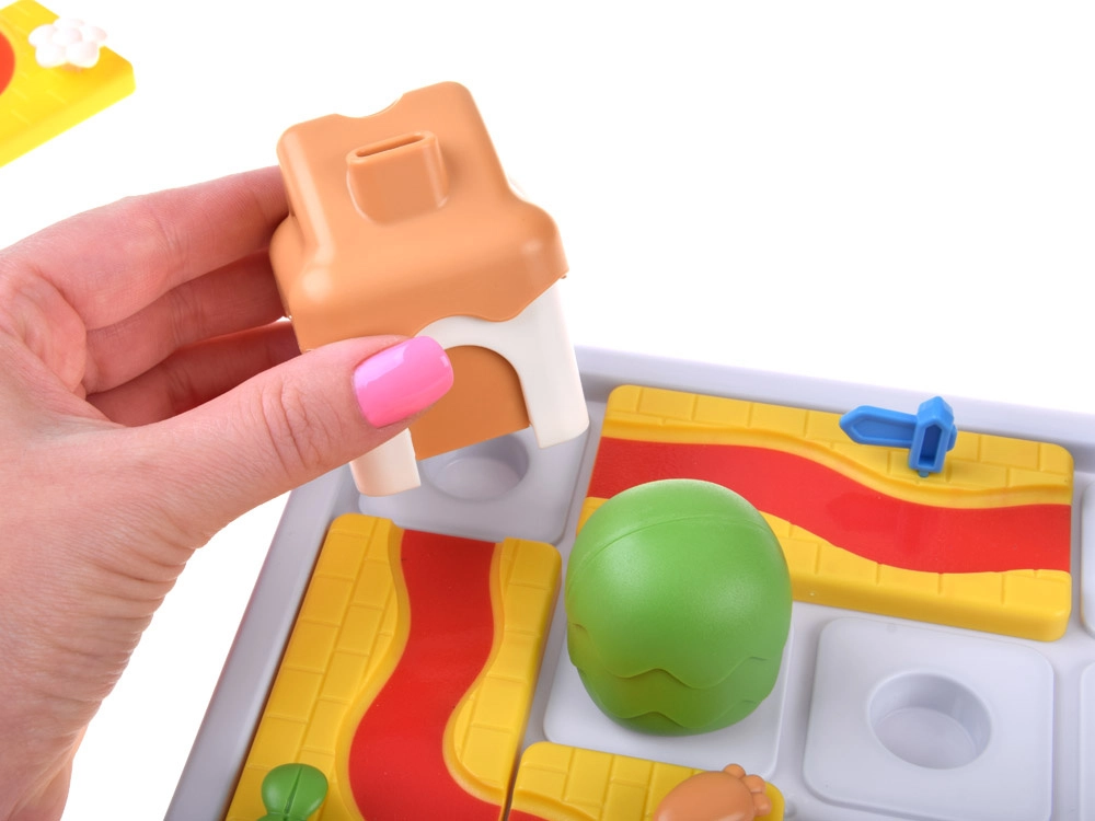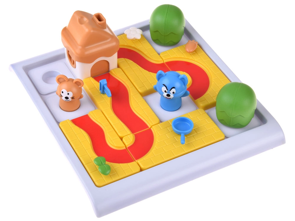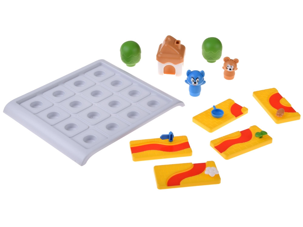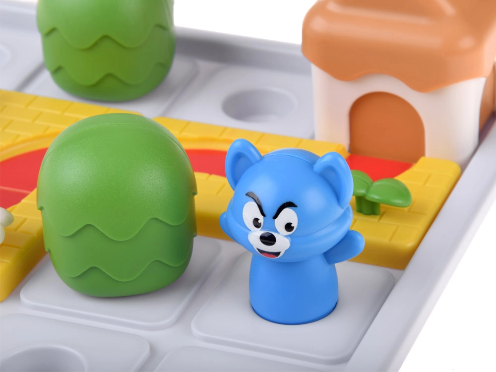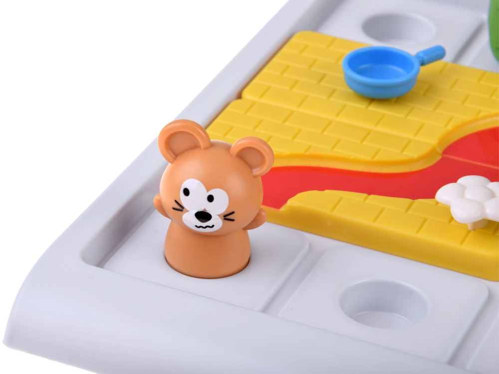 Ανθεκτικά πλαστικά εξαρτήματα με στρογγυλεμένες άκρες – κομμάτια μονοπατιών, σπιτάκι με τυρί, δέντρα και φιγούρες ποντικιού και γάτας – ενισχύουν τη λεπτή κινητικότητα και τον εύκολο χειρισμό.
