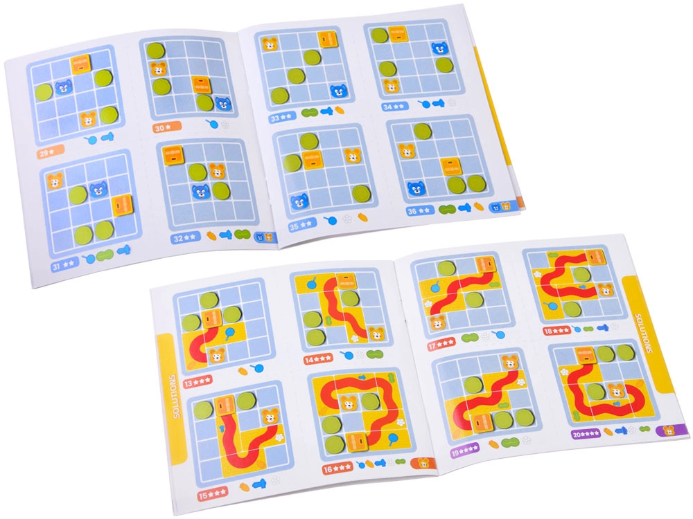 Η σταδιακή δυσκολία σε τέσσερα επίπεδα μαθαίνει στα παιδιά να σχεδιάζουν διαδρομές, να σκέφτονται μπροστά και να λύνουν προβλήματα βήμα προς βήμα. Κάθε αποστολή έχει μία σωστή λύση.