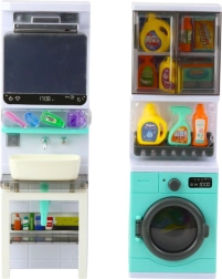Αυτό το λεπτομερώς σχεδιασμένο σετ οικιακού μπάνιου προσφέρει ό,τι χρειάζεται για πειστικό παιχνίδι: νιπτήρα με καθρέφτη, πλυντήριο εμπρόσθιας φόρτωσης, ντουλάπι αποθήκευσης και πλούσια αξεσουάρ. Ο καθρέφτης φωτίζεται μετά την τοποθέτηση μπαταρίας και το πλυντήριο διαθέτει φωτεινά και ηχητικά εφέ που ενισχύουν τη ρεαλιστική εμπειρία.