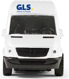 Αυτό το μεταλλικό φορτηγάκι GLS θα ενθουσιάσει μικρούς οδηγούς και παθιασμένους συλλέκτες. Η προσεγμένη εκτύπωση με το λογότυπο και το σύνθημα «Parcels to People», καθώς και οι πιστές λεπτομέρειες αμαξώματος, τροχών και καμπίνας δημιουργούν την αίσθηση ενός αυθεντικού οχήματος κούριερ.