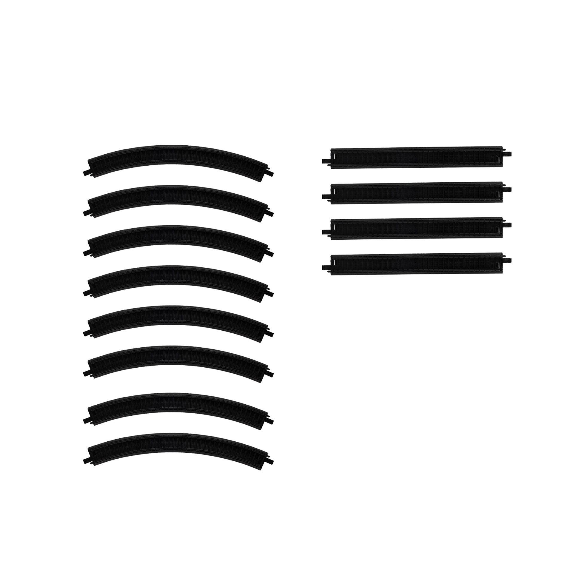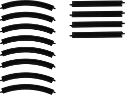 Το σετ 8 καμπύλων και 4 ευθειών ραγών επιτρέπει να φτιάξετε εύκολα ένα οβάλ ή να επεκτείνετε την υπάρχουσα διαδρομή. Απόσταση ραγών 1,4 cm για σταθερή κίνηση.