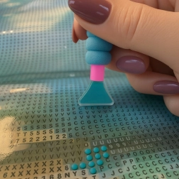 Το ριγωτό δισκάκι, ο εφαρμοστής και το κερί εξασφαλίζουν ακριβή λήψη και τοποθέτηση των πετραδιών στα σωστά σημεία σύμφωνα με τα σύμβολα πάνω στον καμβά.