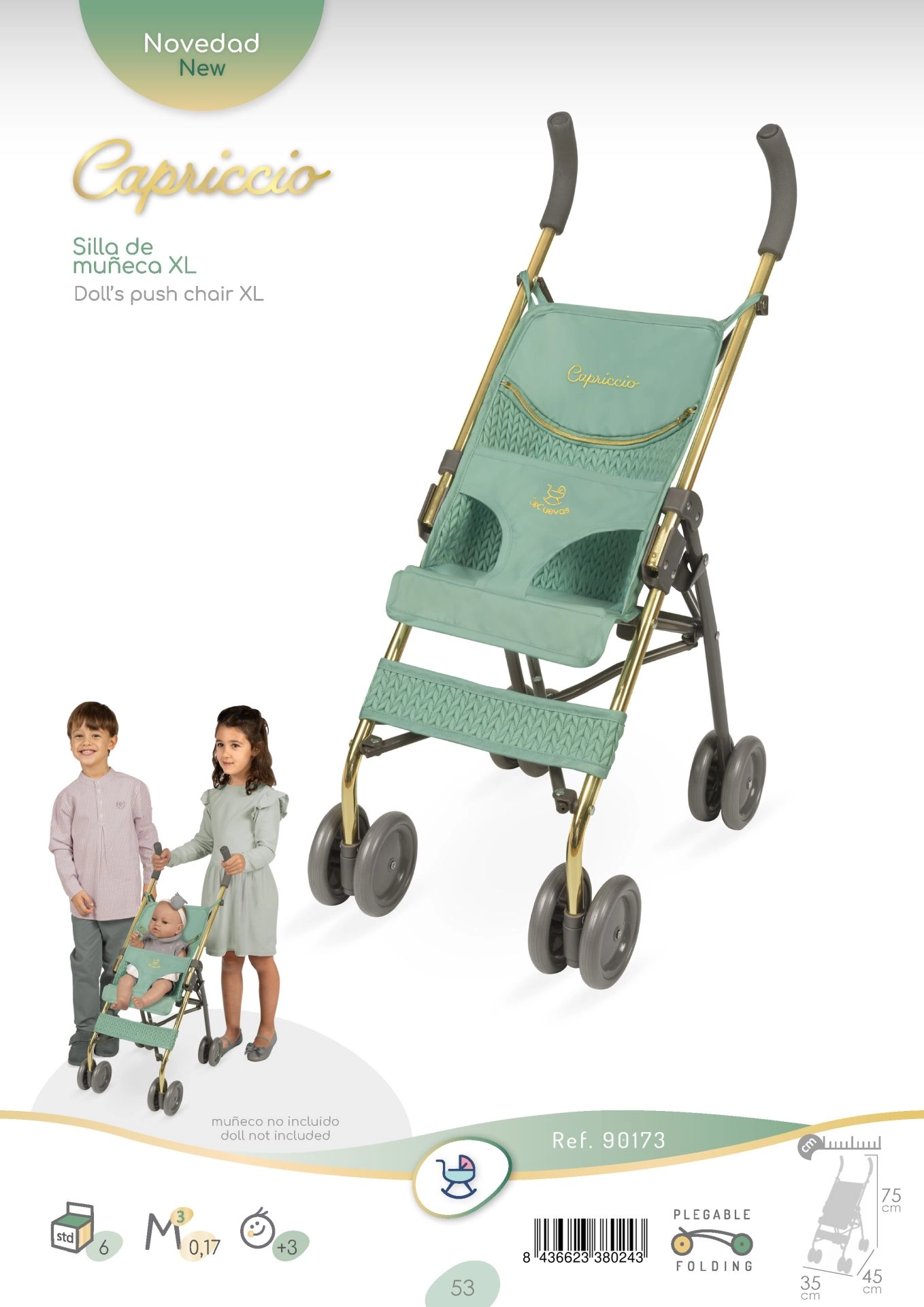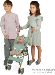 Στυλάτο και πρακτικό πτυσσόμενο καρότσι για κούκλες από τη συλλογή CAPRICCIO σε μοντέρνα μέντα-πράσινη απόχρωση προσφέρει εύκολο χειρισμό, σταθερό μεταλλικό σκελετό και ζώνη τριών σημείων για ασφαλή στερέωση της κούκλας. Χάρη στις συμπαγείς διαστάσεις είναι ιδανικό για ταξίδια και για εσωτερικούς χώρους.