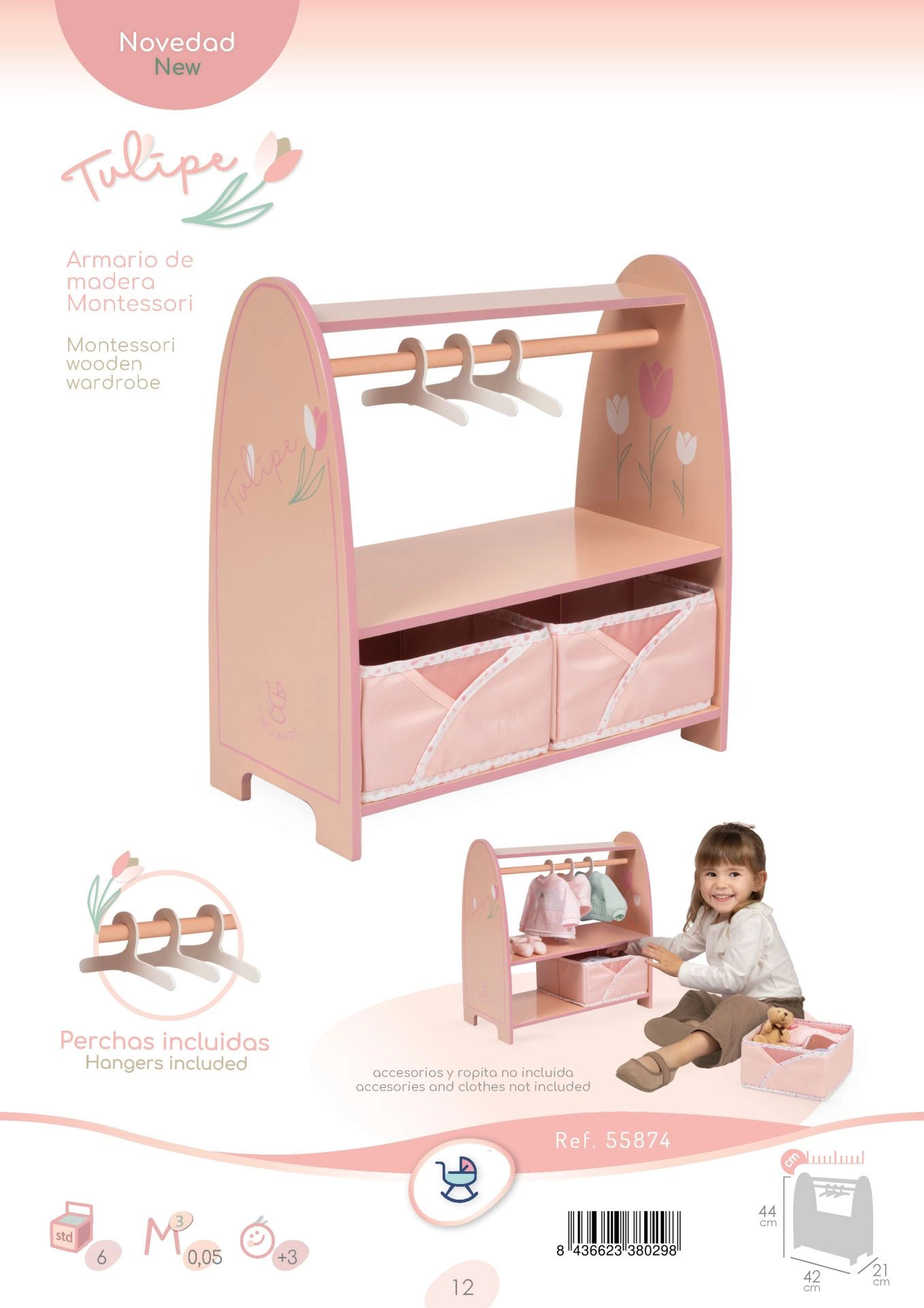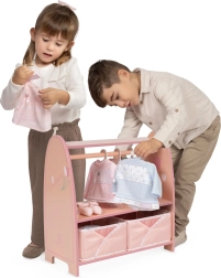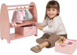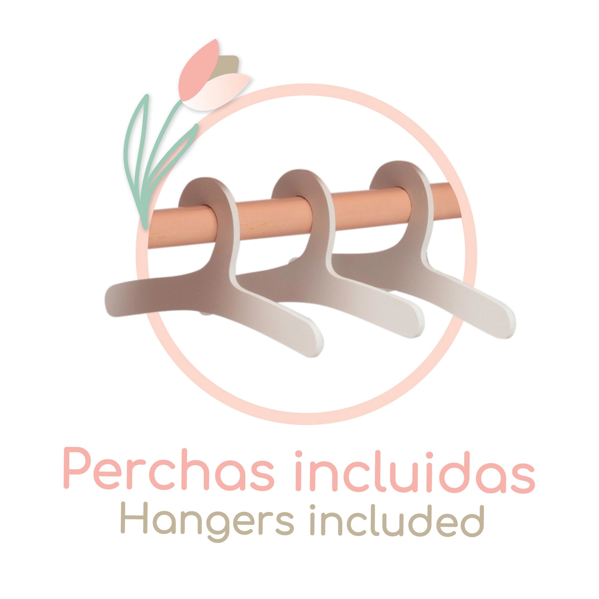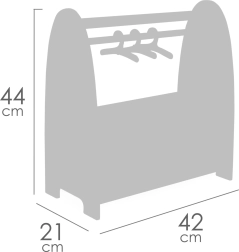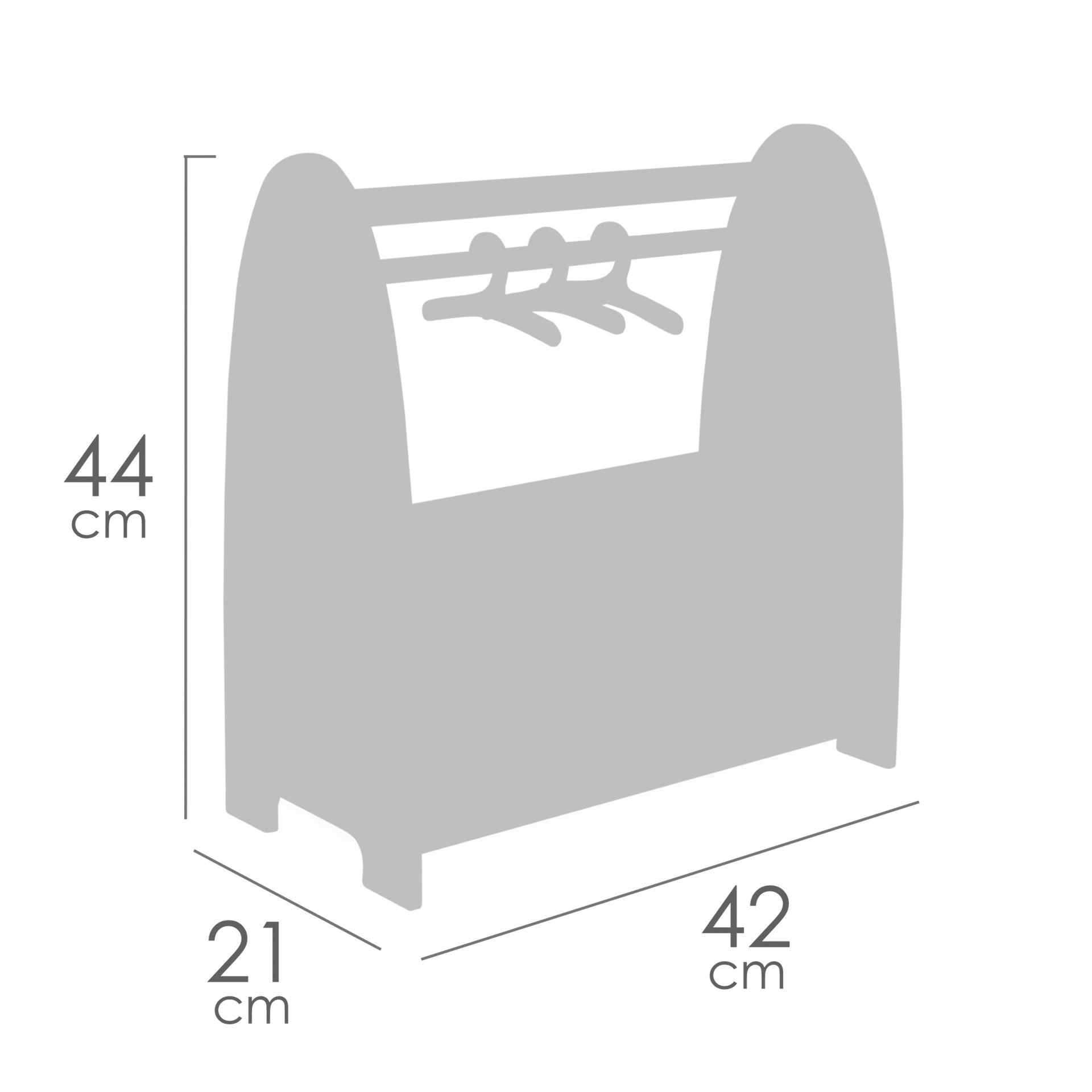 Προσφέρετε στα παιδιά τάξη στον κόσμο των κουκλών. Αυτή η compact ξύλινη κρεμάστρα-ντουλάπα από τη συλλογή TULIPE προσφέρει πρακτική λύση για κρέμασμα και αποθήκευση ρούχων και αξεσουάρ. Η μπάρα ντουλάπας με 3 ξύλινες κρεμάστρες χωρά ρουχαλάκια μήκους έως περίπου 19 cm, ενώ το κάτω ράφι και τα 2 πτυσσόμενα υφασμάτινα καλαθάκια κρατούν όλα τα υπόλοιπα εύκολα προσβάσιμα.
