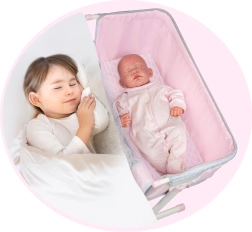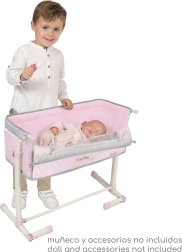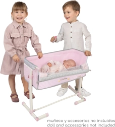 Κομψό λίκνο νεογέννητου για κούκλες από τη σειρά SOPHIE που γοητεύει με τον απαλό σχεδιασμό και τη χρήσιμη λειτουργία συν-ύπνου. Χάρη στη ανακλινόμενη πλευρά, τα ρυθμιζόμενα ποδαράκια και το κρεβατάκι με ρύθμιση ύψους, μετακινείται εύκολα δίπλα στο παιδικό κρεβάτι. Η εύκολη διαχείριση, η ποιοτική κατασκευή και η τρυφερή ροζ απόχρωση με γκρι και λευκές λεπτομέρειες δημιουργούν ένα μαγικό μέρος για κάθε κούκλα.