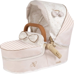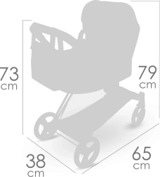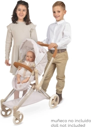 Το καρότσι είναι πτυσσόμενο, μετά το δίπλωμα καταλαμβάνει ελάχιστο χώρο και είναι πρακτικό στη μεταφορά. Η αφαιρούμενη φορητή καλαθούνα επιτρέπει την ασφαλή μεταφορά της κούκλας, ενώ η ρυθμιζόμενη κουκούλα, οι τρίποντες ζώνες και οι περιστρεφόμενοι μπροστινοί τροχοί εξασφαλίζουν άνετη και ομαλή κίνηση. Περιλαμβάνει στυλάτη τσάντα και κάτωθι καλάθι για όλα τα απαραίτητα.
