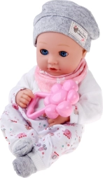 Η κούκλα είναι φτιαγμένη από ευχάριστο, μαλακό υλικό με πλαστικό κεφάλι και χέρια για αντοχή. Τα ρουχαλάκια σε απαλές αποχρώσεις περιλαμβάνουν γκρι σκουφάκι, μαλακή μπλούζα, παντελόνι με σχέδια και γκρι καλτσάκια. Χάρη στα κινούμενα βλέφαρα μιμείται πιστά τον ύπνο και την εγρήγορση, ενισχύοντας τη φυσική φροντίδα και την ενσυναίσθηση.