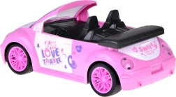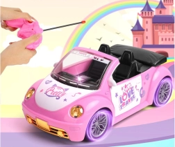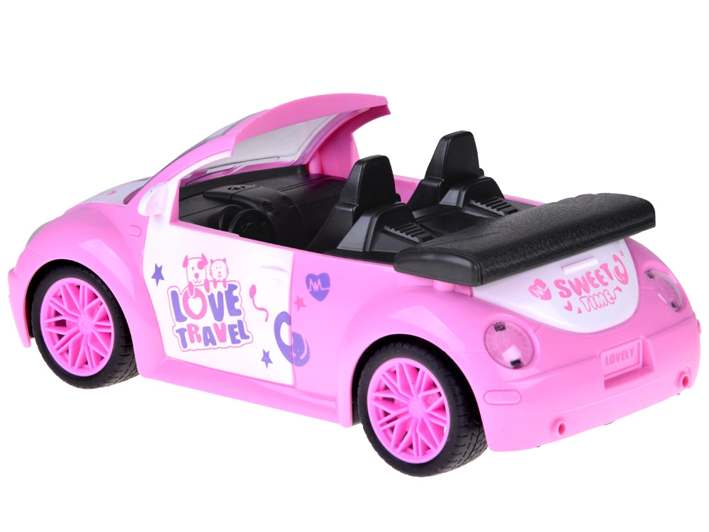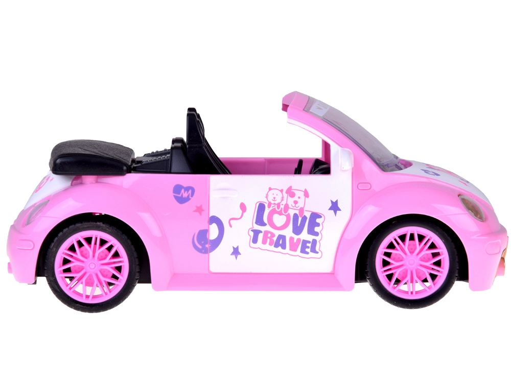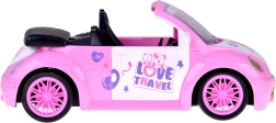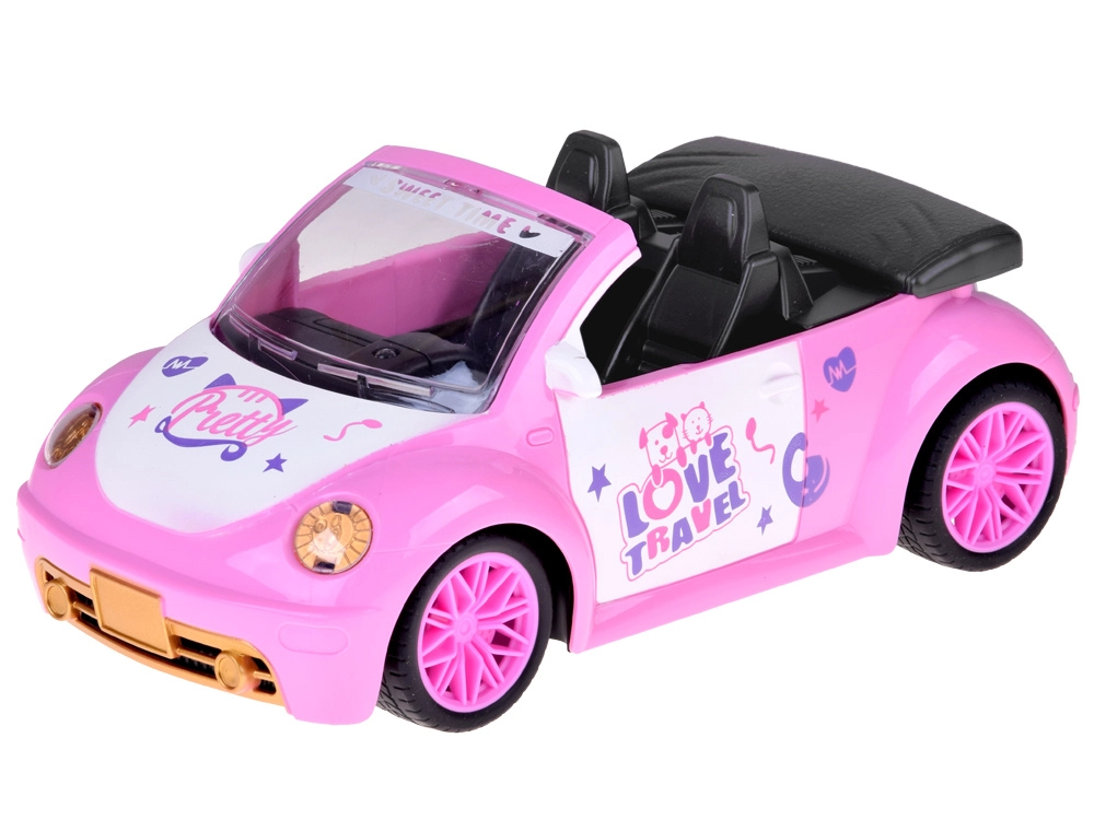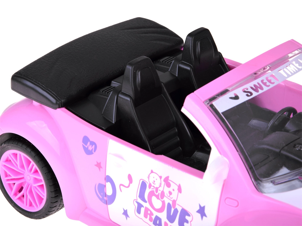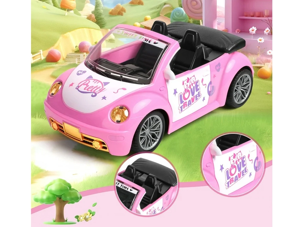 Το στιλάτο ροζ αυτοκινητάκι κάμπριο για κούκλες συνδυάζει ελκυστική εμφάνιση με απλό έλεγχο. Τα παιδιά διαχειρίζονται την κατεύθυνση και τις στροφές με δύο κουμπιά, ενώ οι μπροστινοί προβολείς ανάβουν κατά την κίνηση προς τα εμπρός για πιο ρεαλιστική εμπειρία. Ιδανικό για παιδικό δωμάτιο σε λείες επιφάνειες.