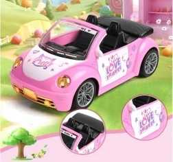 Ανοιχτό κάμπριο με λεπτομερές εσωτερικό και διακοσμητικά αυτοκόλλητα που ολοκληρώνουν υπέροχα τον κόσμο των κουκλών και φιγούρων.