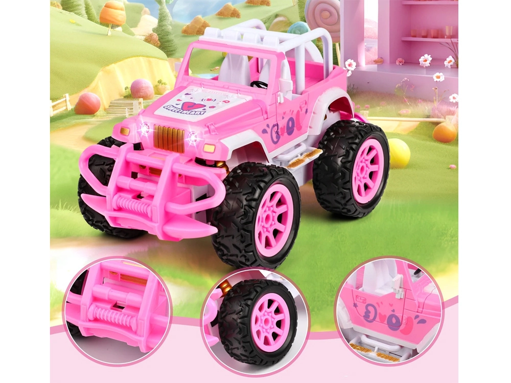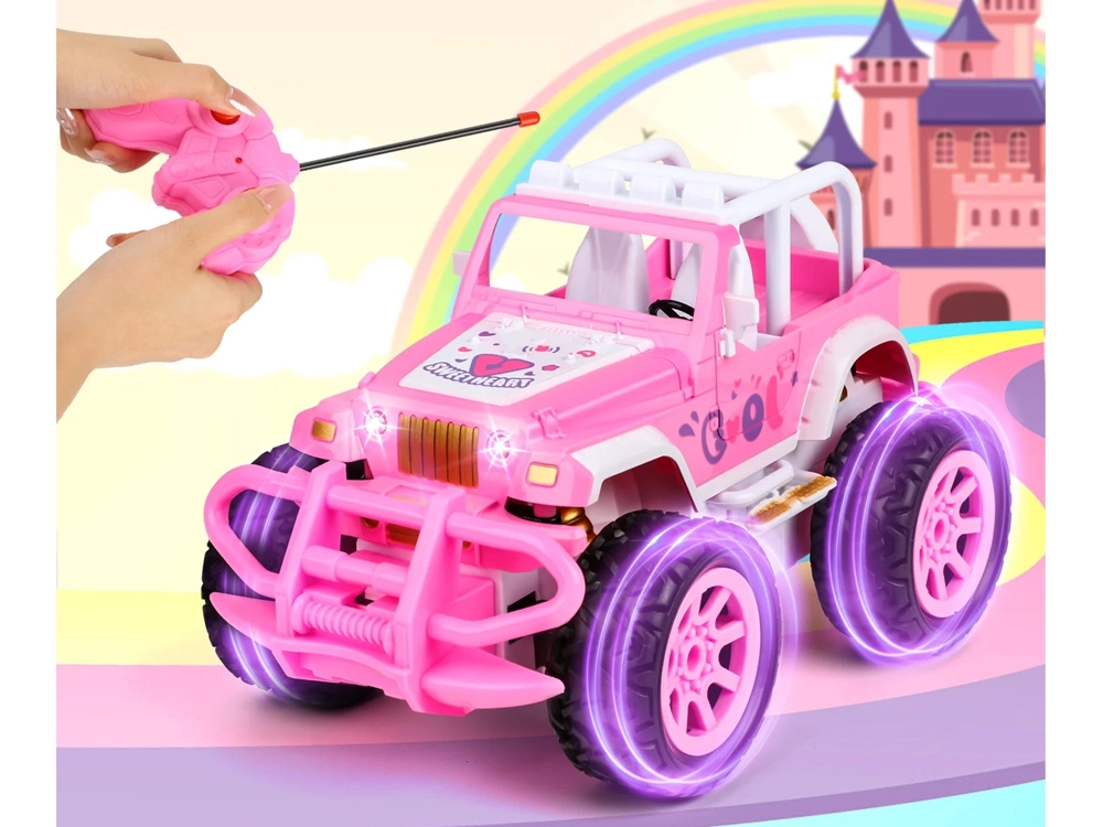 Στιλάτο ροζ RC εκτός δρόμου αυτοκίνητο για παιδιά που συνδυάζει ελκυστικό σχεδιασμό με δυναμική οδήγηση. Χάρη στο απλό τηλεχειριστήριο τα παιδιά μαθαίνουν γρήγορα να οδηγούν μπροστά, πίσω και να στρίβουν, αναπτύσσοντας παράλληλα τη λεπτή κινητικότητα και τη λογική σκέψη. Τα φωτεινά εφέ προσθέτουν ρεαλισμό και ακόμη περισσότερη διασκέδαση.