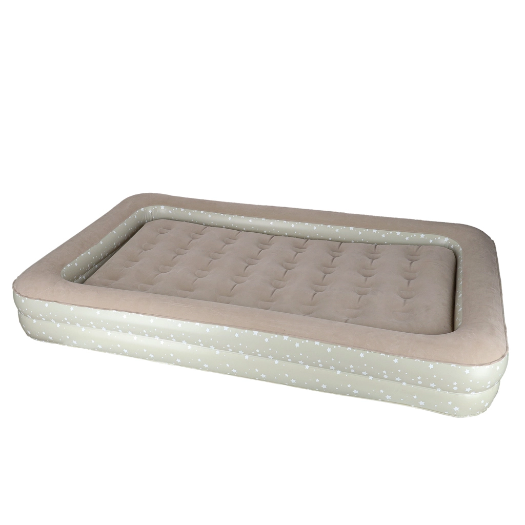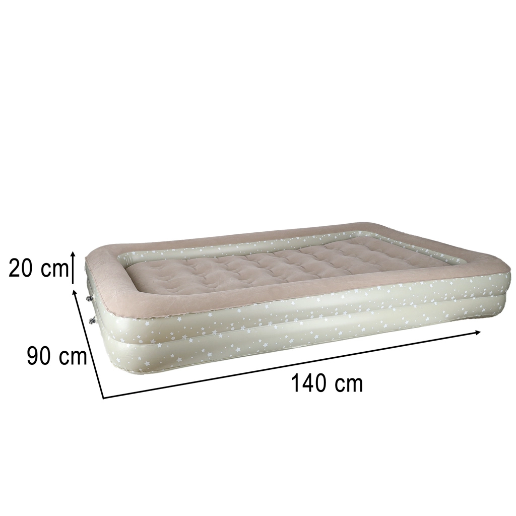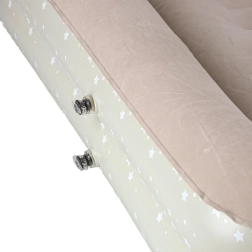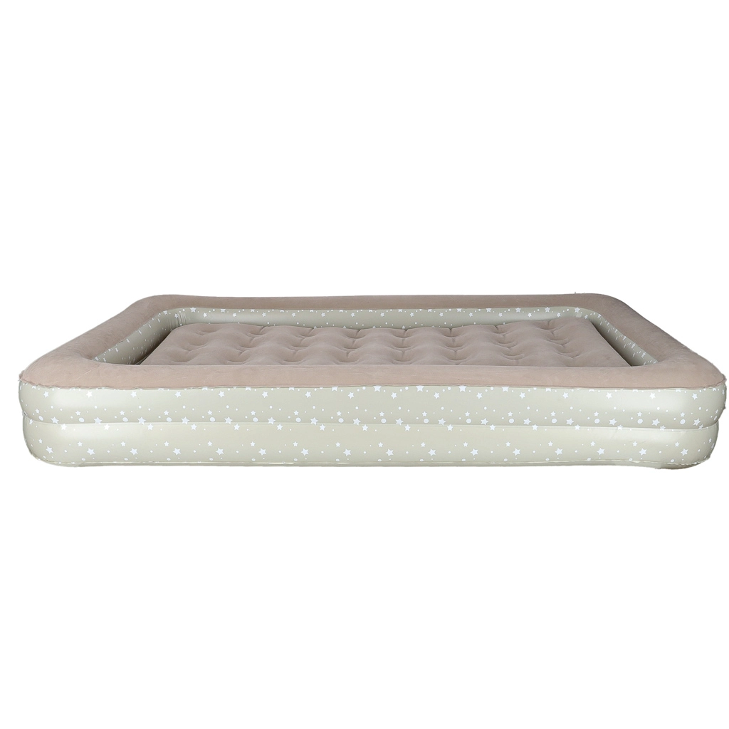 Δημιουργήστε για τα παιδιά ένα άνετο και ασφαλές περιβάλλον όπου κι αν βρίσκεστε – αυτό το διμερές παιδικό φουσκωτό κρεβάτι συνδυάζει εξωτερικό πλαίσιο με υπερυψωμένα άκρα και αφαιρούμενο εσωτερικό στρώμα. Η μαλακή βελουτέ επιφάνεια είναι ευχάριστη στην αφή και αποτρέπει την ολίσθηση των κλινοσκεπασμάτων. Το κομψό μοτίβο με αστεράκια χαρίζει παιχνιδιάρικη όψη.