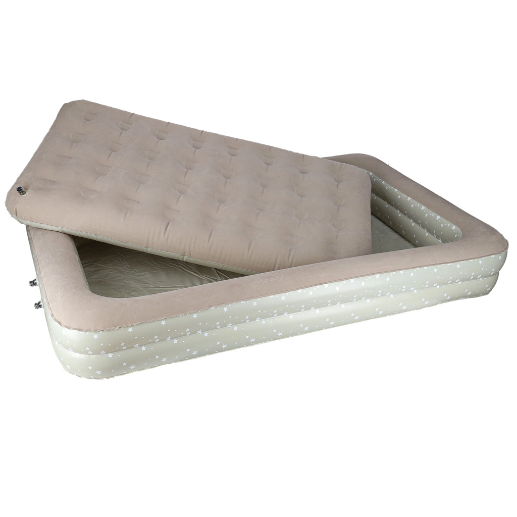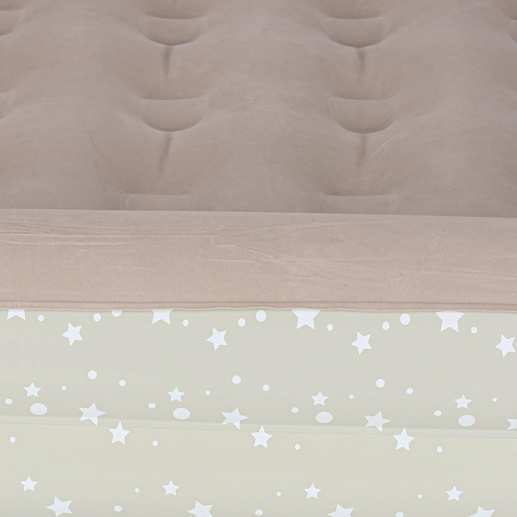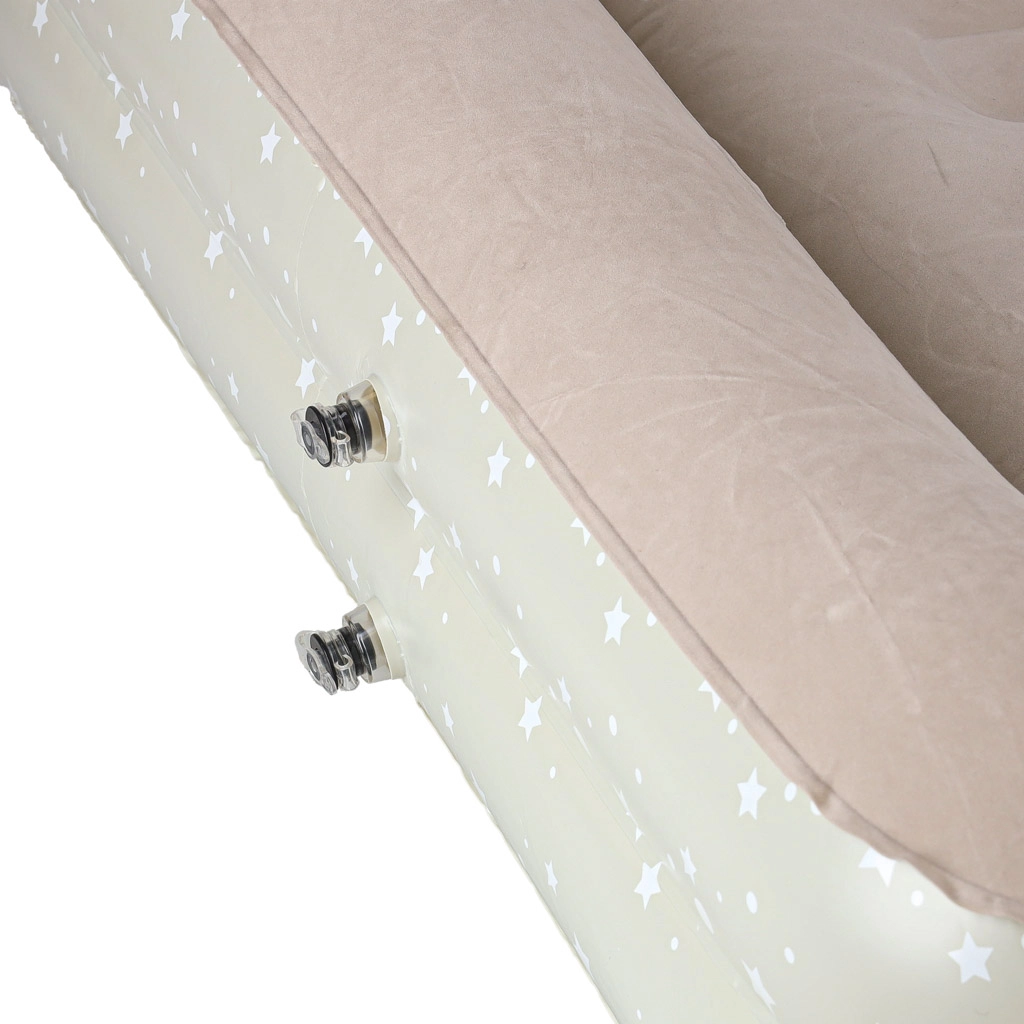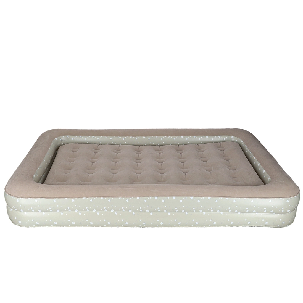 Δημιουργήστε για τα παιδιά ένα άνετο και ασφαλές περιβάλλον όπου κι αν βρίσκεστε – αυτό το διμερές παιδικό φουσκωτό κρεβάτι συνδυάζει εξωτερικό πλαίσιο με υπερυψωμένα άκρα και αφαιρούμενο εσωτερικό στρώμα. Η μαλακή βελουτέ επιφάνεια είναι ευχάριστη στην αφή και αποτρέπει την ολίσθηση των κλινοσκεπασμάτων. Το κομψό μοτίβο με αστεράκια χαρίζει παιχνιδιάρικη όψη.