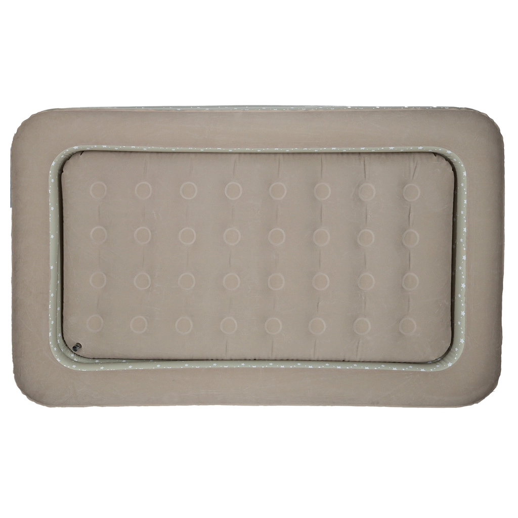 Πρακτικό διμερές φουσκωτό κρεβάτι για παιδιά που προσφέρει ασφαλή ύπνο με υπερυψωμένα άκρα και ανεξάρτητο εσωτερικό στρώμα. Στη συσκευασία περιλαμβάνονται χειροκίνητη αντλία με διάφορα εξαρτήματα για γρήγορο φούσκωμα, αυτοκόλλητο επισκευής και οδηγίες. Η άνετη βελουτέ επιφάνεια, το μοτίβο με αστεράκια και οι συμπαγείς διαστάσεις κάνουν αυτό το κρεβάτι ιδανική επιλογή για ταξίδια, για το σπίτι των παππούδων ή για απρόσμενους επισκέπτες. Αντοχή έως 50 kg, μέγεθος για 1 παιδί.