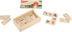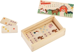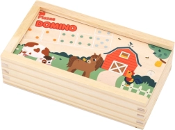 Ανακαλύψτε τη μαγεία του διπλής όψης ξύλινου ντόμινο με θέμα τη φάρμα, που προσφέρει δύο τρόπους διασκέδασης σε ένα παιχνίδι. Τα μικρότερα παιδιά ταιριάζουν κομμάτια με βάση τις χαρούμενες εικόνες ζώων, ενώ τα μεγαλύτερα παίζουν το κλασικό ντόμινο με κουκίδες και καλλιεργούν διακριτικά το μέτρημα και τη λογική. Ποιοτικό φυσικό ξύλο, ευχάριστα παστέλ χρώματα και πρακτικό ξύλινο κουτί με καπάκι το καθιστούν ένα όμορφο και ανθεκτικό παιχνίδι για παιδιά από 2 ετών.