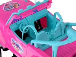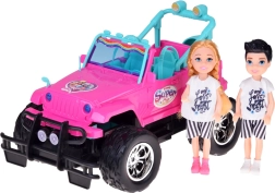 Ξεκινήστε μια περιπέτεια σαφάρι με το ροζ off‑road αυτοκινητάκι για κούκλες. Η ανοιχτή καμπίνα με τιρκουάζ καθίσματα και ρυθμιζόμενες ζώνες ασφαλίζει τις φιγούρες που περιλαμβάνονται. Οι μεγάλοι καουτσουκένιοι τροχοί και ο προφυλακτήρας δίνουν στο αυτοκίνητο off‑road στυλ, ενώ τα μπροστινά LED φώτα προσθέτουν ρεαλισμό στην οδήγηση.
