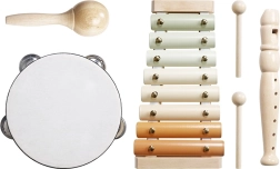 Ντέφι, μαράκα, φλογέρα και ξυλόφωνο με μπαγκέτες προσφέρουν στα παιδιά μια ευρεία ποικιλία ήχων και παιχνιδιών.