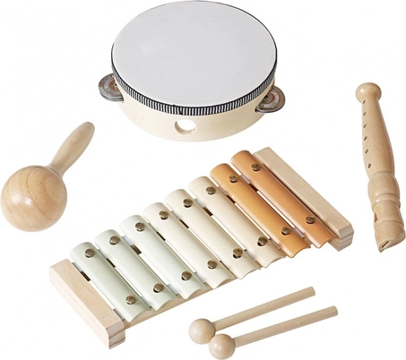 Ανακαλύψτε τη χαρά των πρώτων ήχων με το παιδικό μουσικό σετ 4 σε 1 από φυσικό ξύλο. Το σετ περιλαμβάνει ντέφι, μαράκα, φλογέρα και ξυλόφωνο με μπαγκέτες – ιδανικό για τα πρώτα μουσικά βήματα. Τα παιχνίδια παράγουν ευχάριστους ήχους και αναπτύσσουν το ρυθμικό αισθητήριο, την μουσική ακοή και τη λεπτή κινητικότητα. Δεν πρόκειται για επαγγελματικά όργανα, αλλά για ασφαλή και διασκεδαστικά μουσικά παιχνίδια για τους μικρούς μας φίλους.