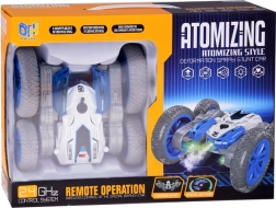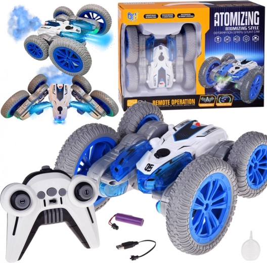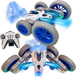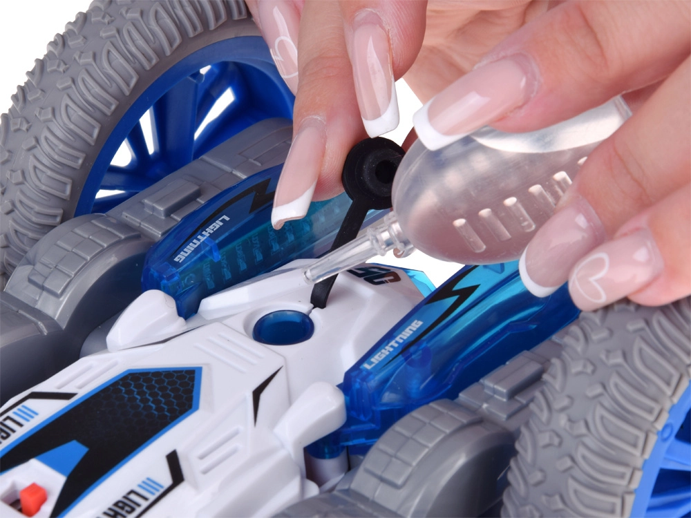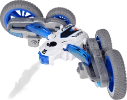 Αυτό το κασκαντερικό RC αυτοκίνητο είναι φτιαγμένο για αδρεναλινική οδήγηση στο σπίτι και σε λείες επιφάνειες έξω. Χάρη στους μεγάλους τροχούς και την ευέλικτη κατασκευή, εκτελεί τούμπες, οδηγεί «στην κοιλιά και στην πλάτη», κάνει γρήγορες αλλαγές κατεύθυνσης και εντυπωσιακές περιστροφές 360°. Το υπό φωτισμό εφέ υδρατμών και οι δίχρωμες LED διόδοι προσδίδουν εντυπωσιακή εμφάνιση στην οδήγηση.