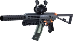 Το μοντέλο MK7 θα ενθουσιάσει κάθε λάτρη της δράσης. Χάρη στη μπαταρία 7,4 V Li είναι έτοιμο για μακρά διάρκεια παιχνιδιού χωρίς περιττές διακοπές. Οι εναλλάξιμοι γεμιστήρες επιτρέπουν γρήγορη αλλαγή πυρομαχικών, ενώ ο οπτικός σκοπευτής βοηθά σε πιο ακριβή χτυπήματα. Το πτυσσόμενο κοντάκι προσδίδει τακτικό χαρακτήρα στο όπλο και άνετη προσαρμογή στον παίκτη.