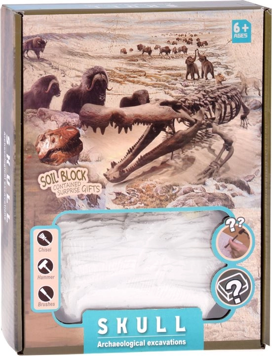 Στο μπλοκ μπορεί να κρύβεται κρανίο μαμούθ, σmilόδοντα τίγρη, αετού, κροκόδειλου και άλλων – ιδανικό για συλλογή και εκμάθηση για τα ζώα.