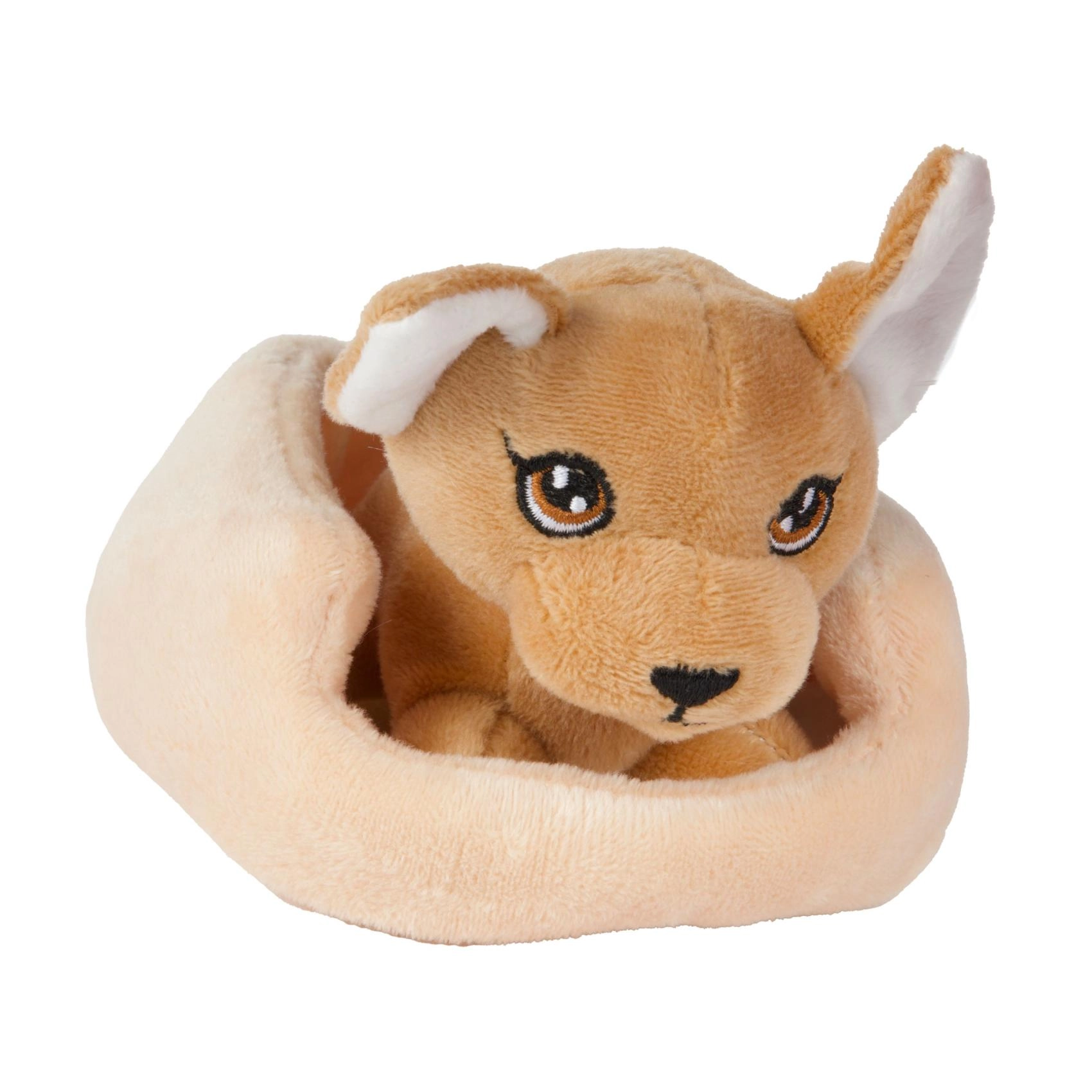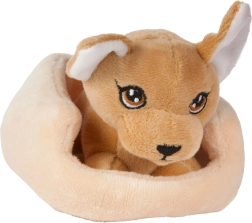 Χαριτωμένο λούτρινο ζωάκι σε μαλακό κρεβατάκι που προσφέρει στα παιδιά ώρες χαράς. Είναι βελούδινο στην αφή, πολύ ελαφρύ και ιδανικό για αγκαλιές και παιχνίδι ρόλων με κατοικίδια. Ασφαλής κατασκευή με κεντημένες λεπτομέρειες χωρίς σκληρά μέρη, κατάλληλο από 2 ετών.