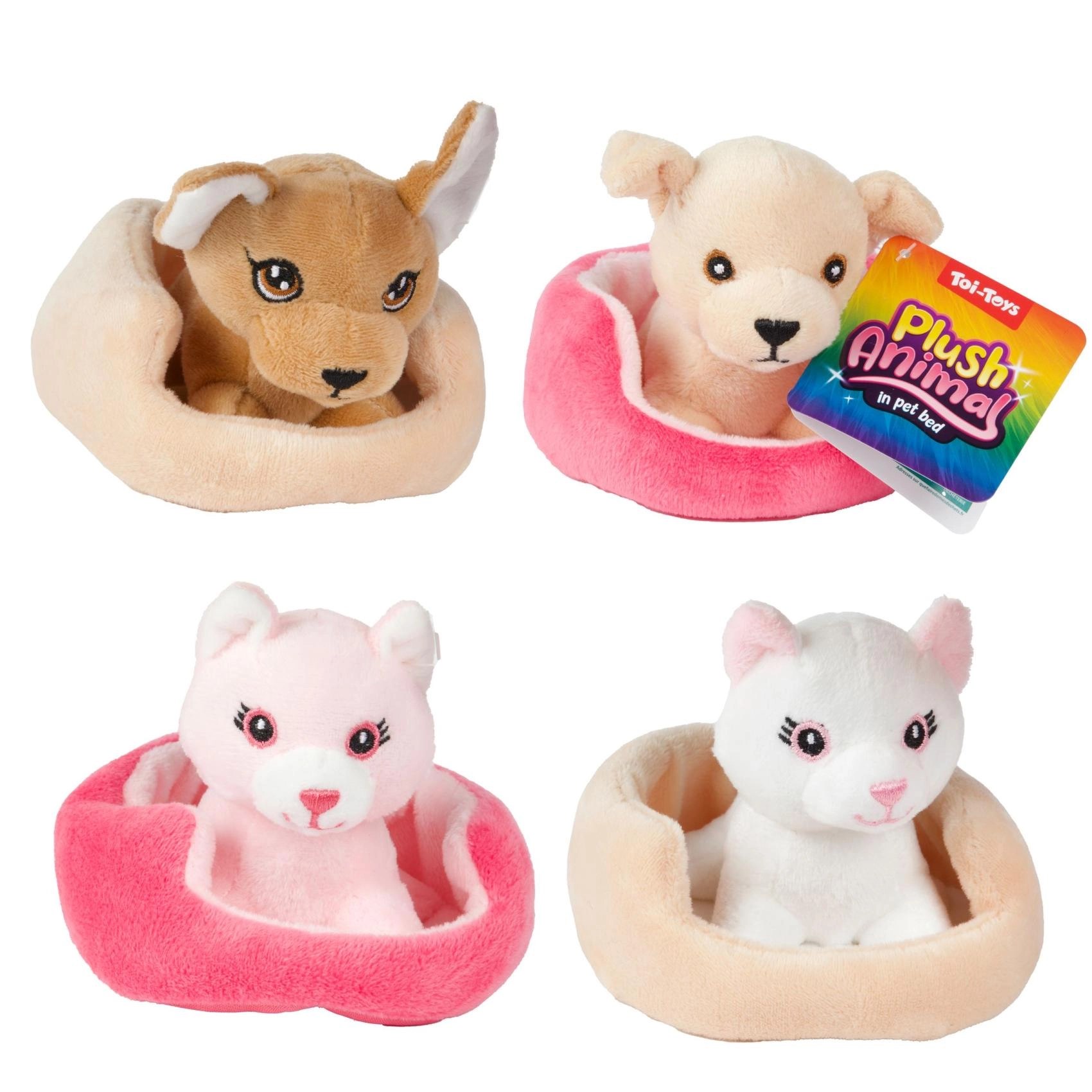 Αυτό το χαριτωμένο λούτρινο γατάκι ή σκυλάκι σε ένα ζεστό κρεβατάκι είναι ο τέλειος φίλος για καθημερινό παιχνίδι και ύπνο. Χάρη στο μαλακό λούτρινο ύφασμα και το συμπαγές μέγεθος κρατιέται εύκολα ακόμη και από τα πιο μικρά χεράκια και ενισχύει τη φαντασία και τα παιχνίδια φροντίδας.