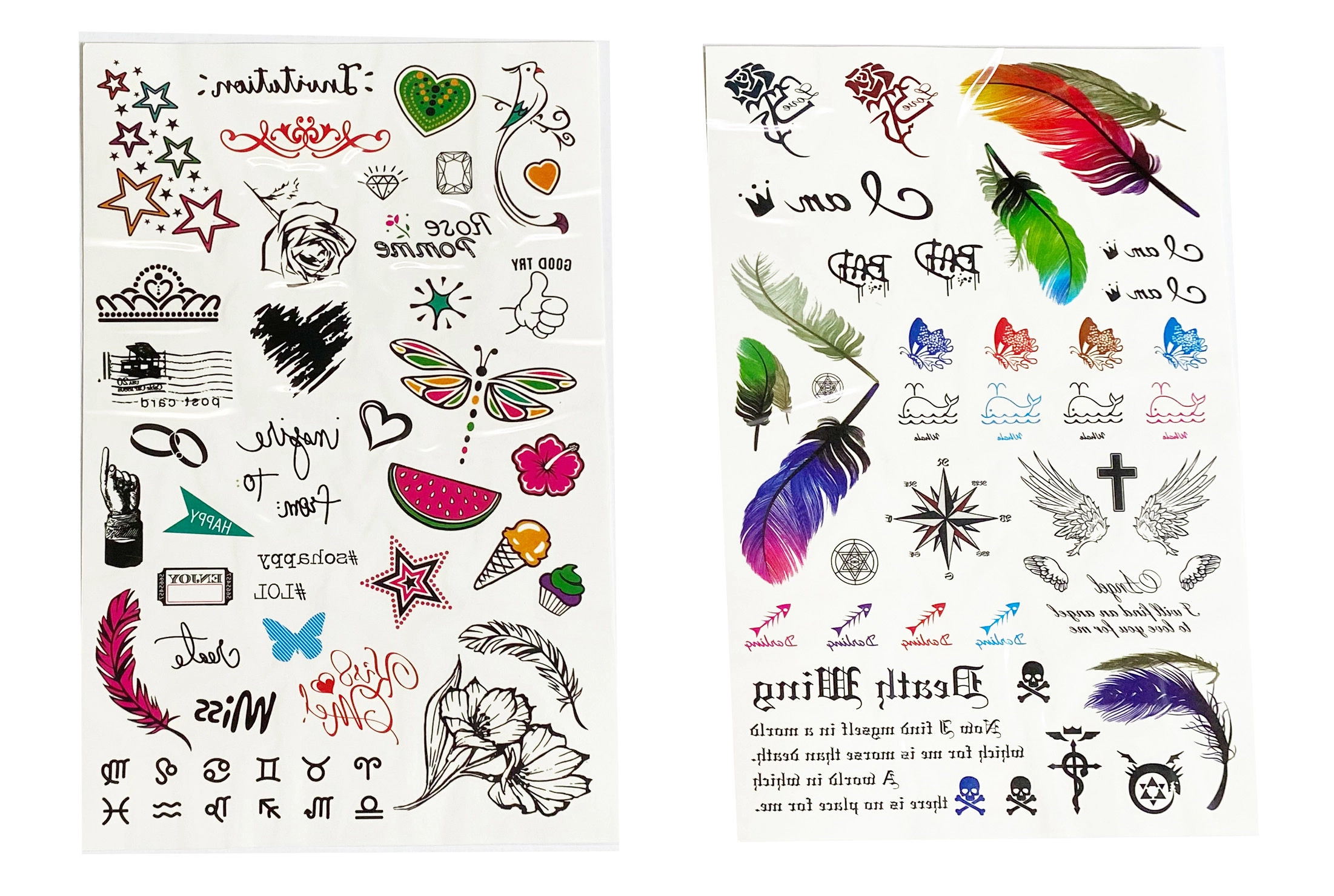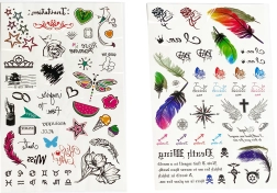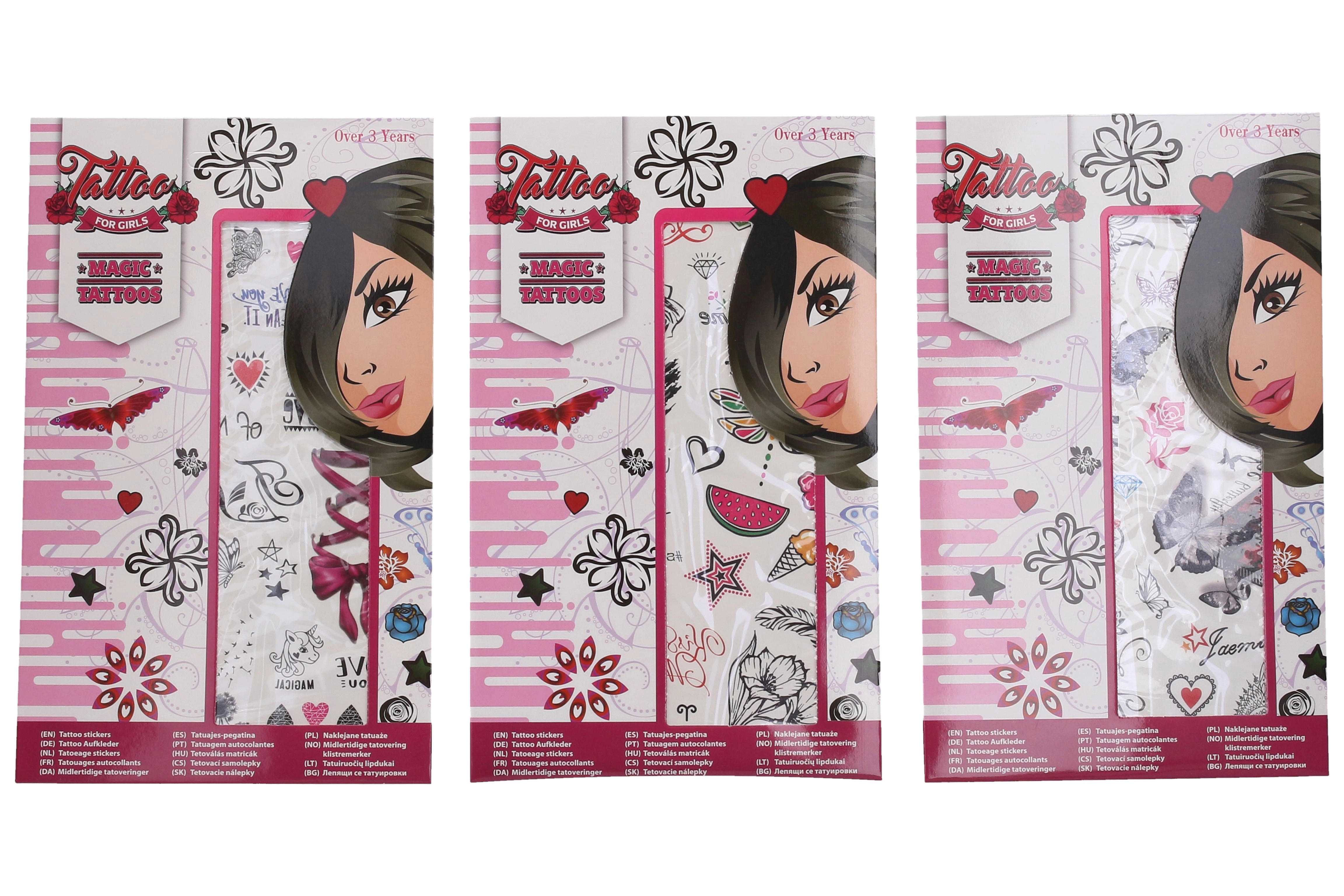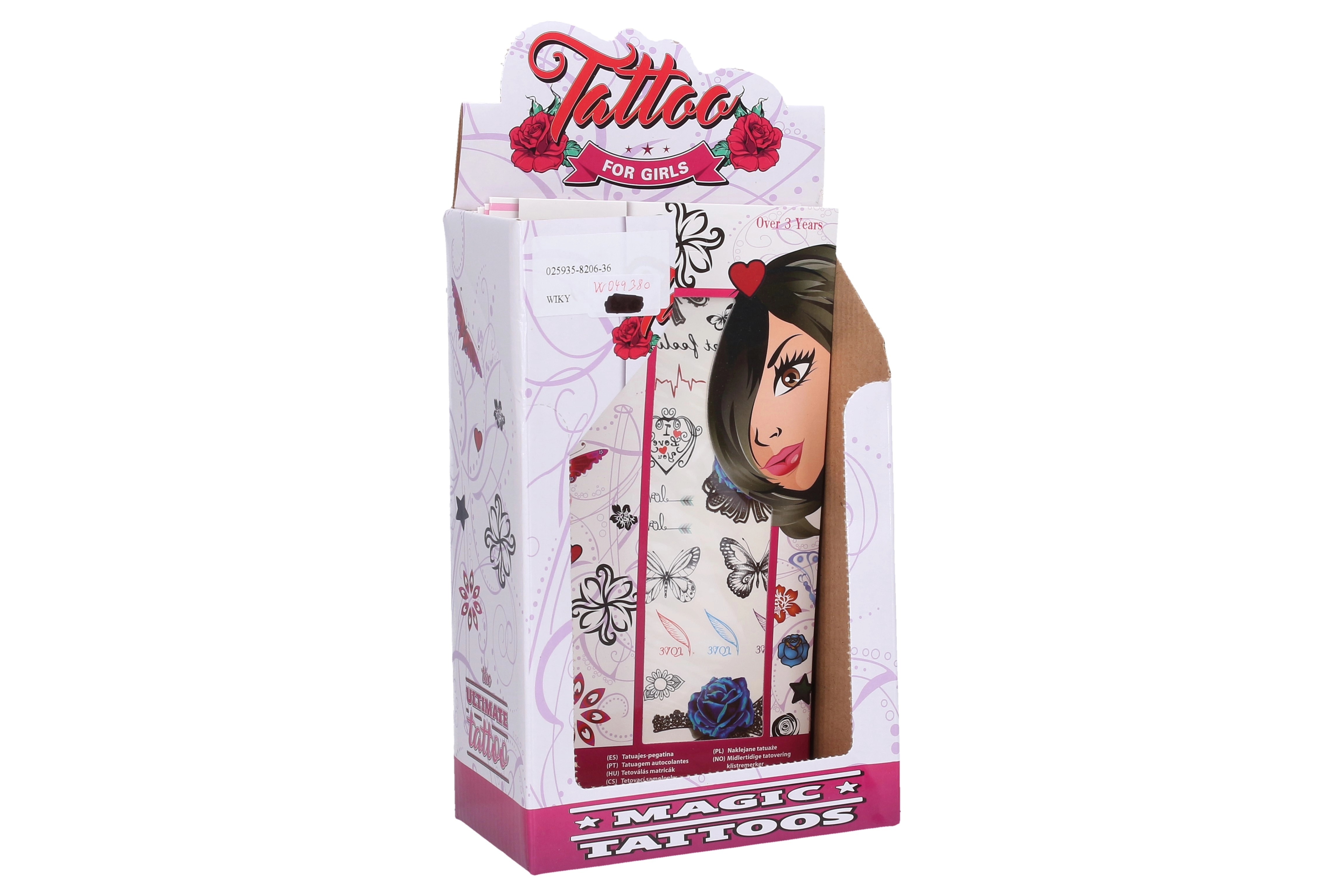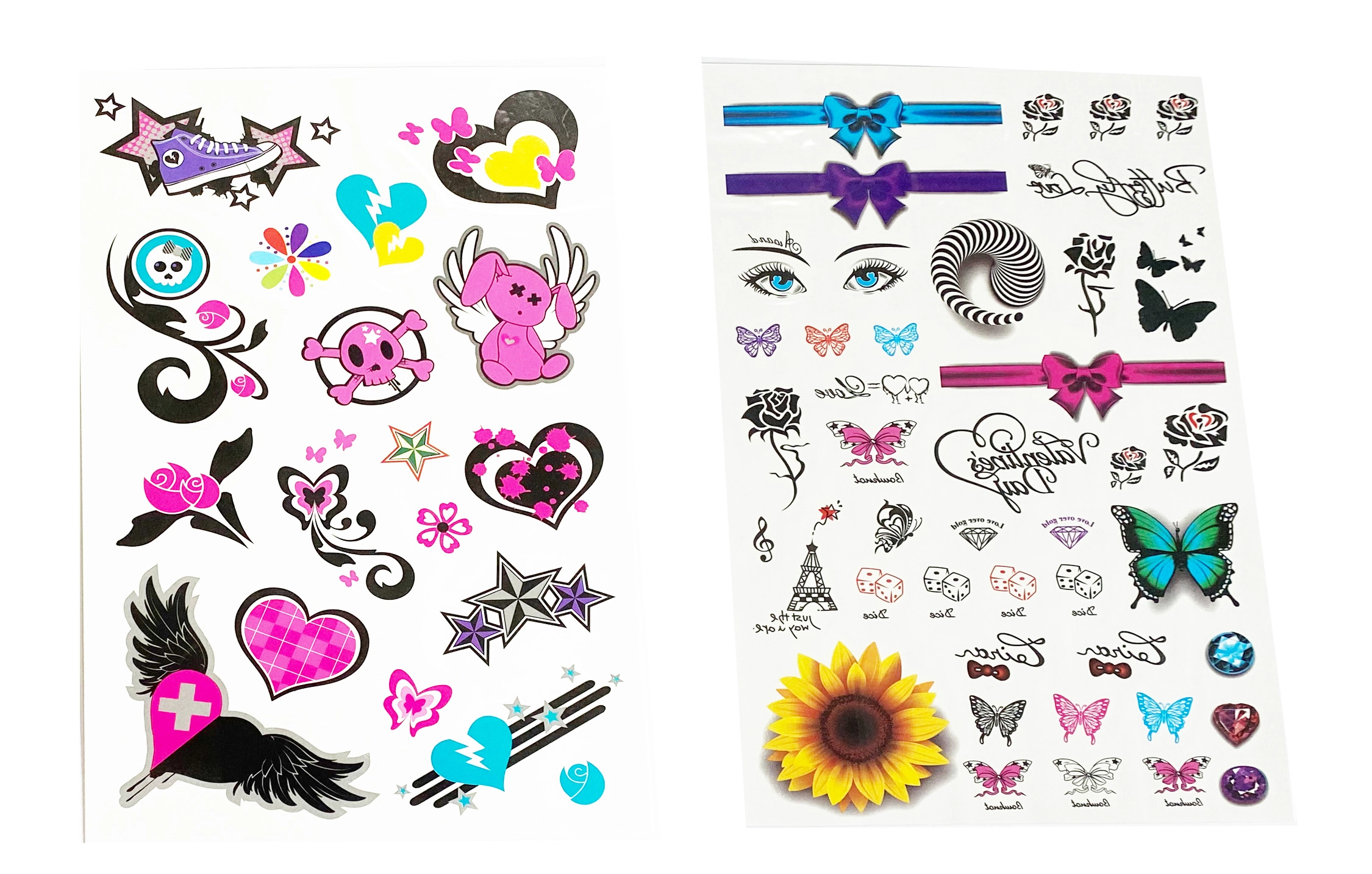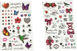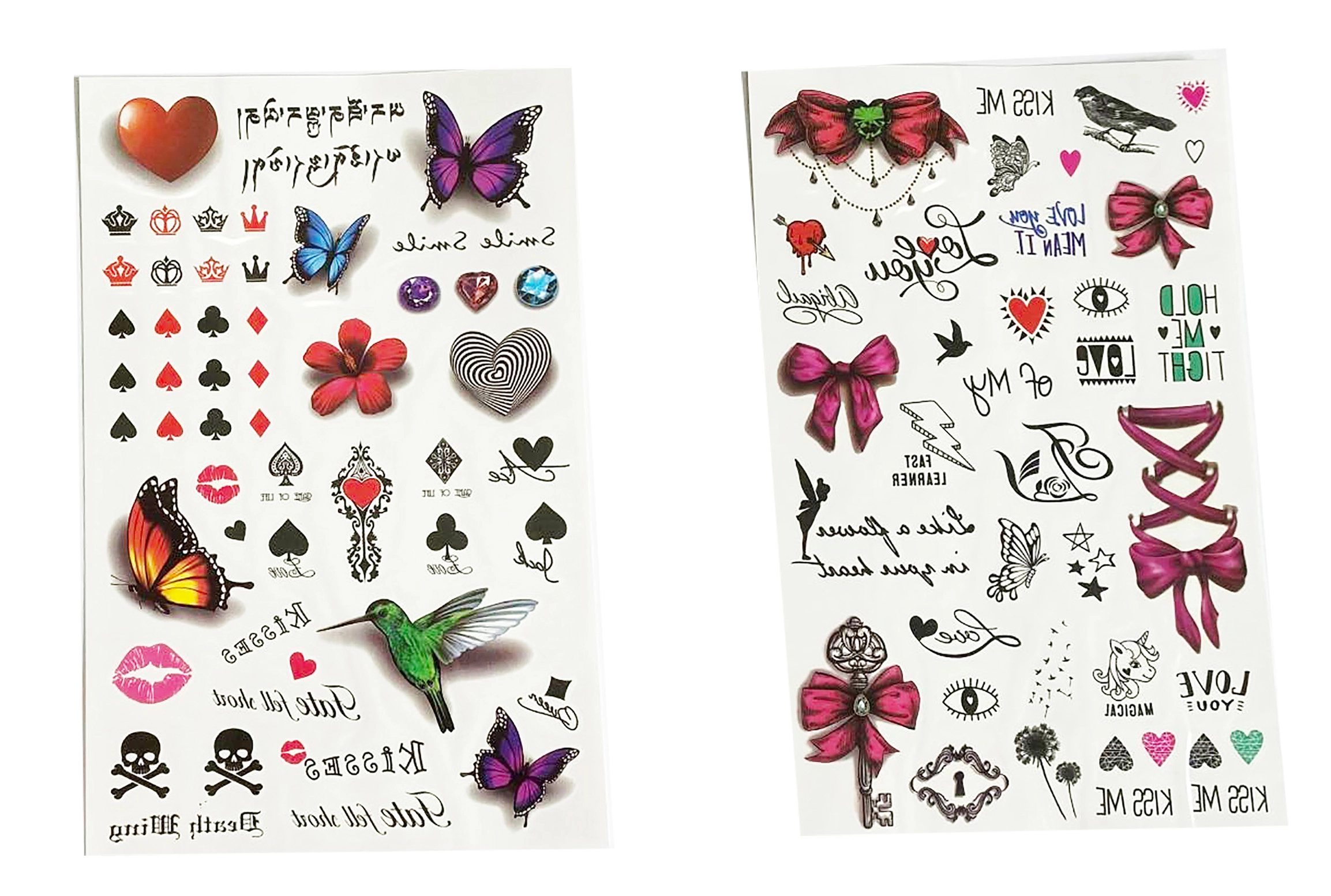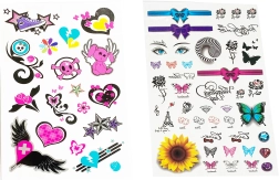 Ανακαλύψτε τον πολύχρωμο κόσμο των προσωρινών τατουάζ για κορίτσια. Σε κάθε φύλλο θα βρείτε δεκάδες χαριτωμένα μοτίβα σε διάφορα μεγέθη – από πεταλούδες και λουλούδια μέχρι καρδούλες, φιογκάκια και αστεράκια. Χάρη στην απλή διαδικασία, μπορούν να εφαρμοστούν και από παιδιά υπό την επίβλεψη ενηλίκων. Τα τατουάζ είναι ιδανικά για γιορτές, καρναβάλια, δωράκια για σακουλάκια πάρτι και ως δημιουργικό στολίδι για το Σαββατοκύριακο.