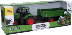 Ανθεκτικό τρακτέρ με ρυμουλκούμενο για μικρούς αγρότες, με ελεύθερους τροχούς για ομαλή κίνηση, ανακλινόμενη πόρτα ρυμουλκούμενου για εύκολη φόρτωση και διαστάσεις 42 × 10,5 × 13 cm, ιδανικό για παιχνίδι στο σπίτι και σε εξωτερικό χώρο.