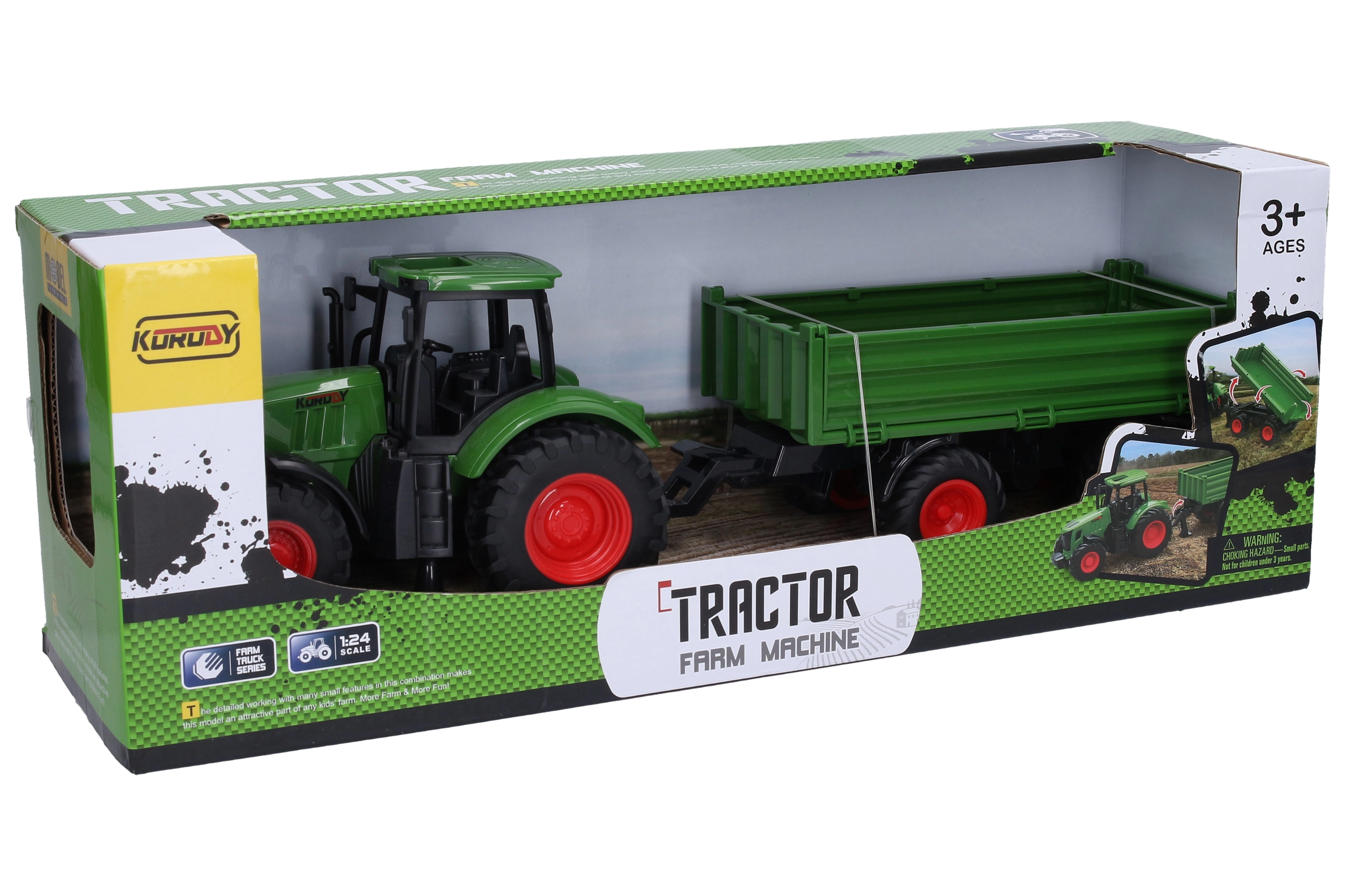 Ανακαλύψτε τη διασκέδαση στο αγρόκτημα με αυτό το λεπτομερώς σχεδιασμένο τρακτέρ με ρυμουλκούμενο. Χάρη στους ελεύθερους τροχούς το όχημα χειρίζεται εύκολα και είναι ιδανικό για παιδικά χέρια. Η ανακλινόμενη πόρτα του ρυμουλκούμενου επιτρέπει ρεαλιστική φόρτωση και εκφόρτωση, ενισχύοντας το δημιουργικό παιχνίδι και την ανάπτυξη της κινητικότητας.