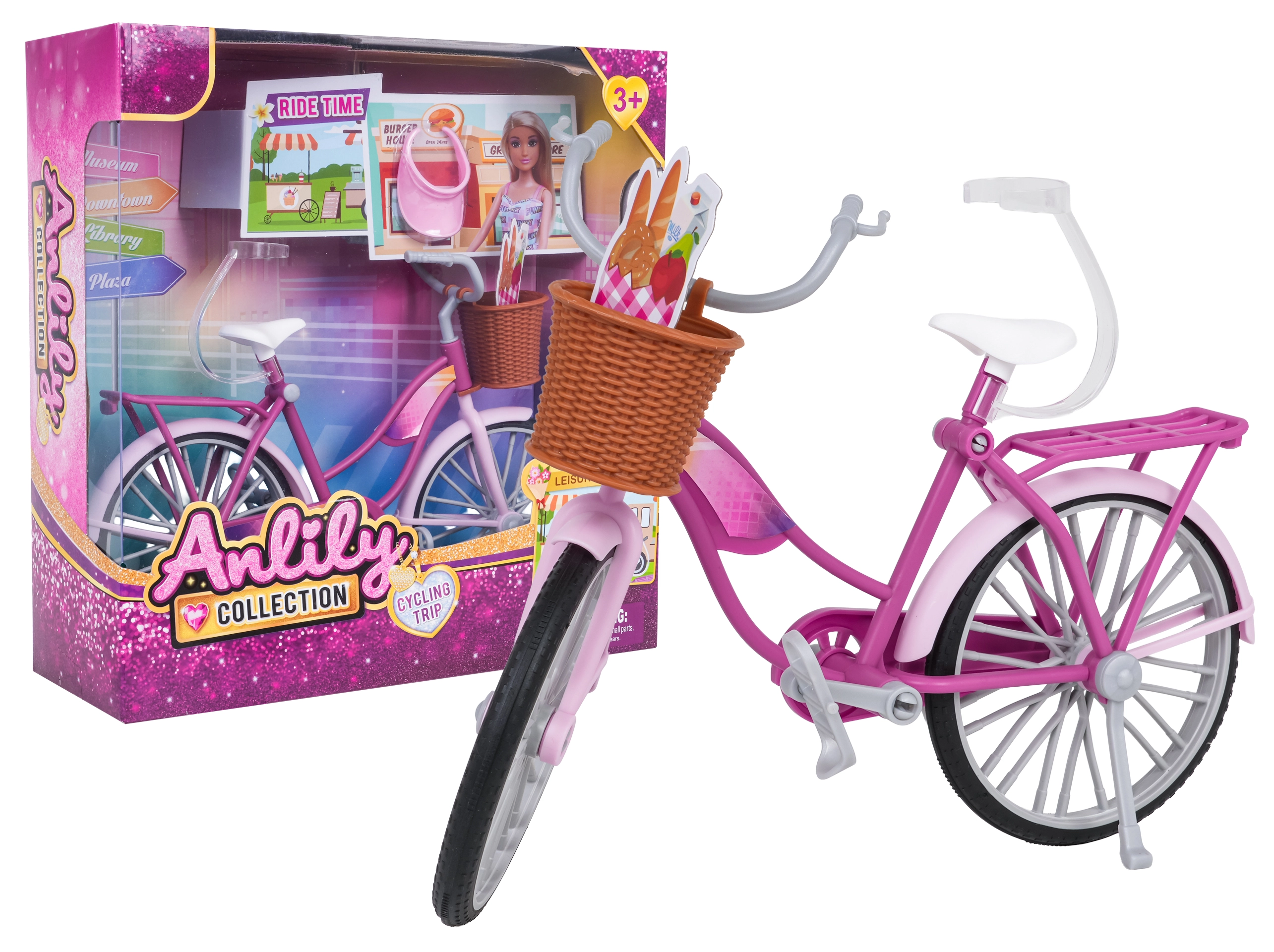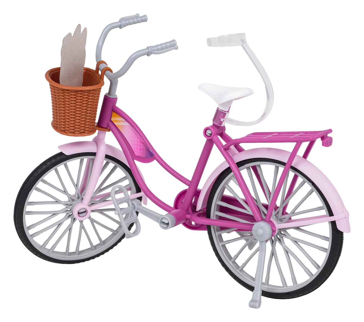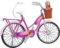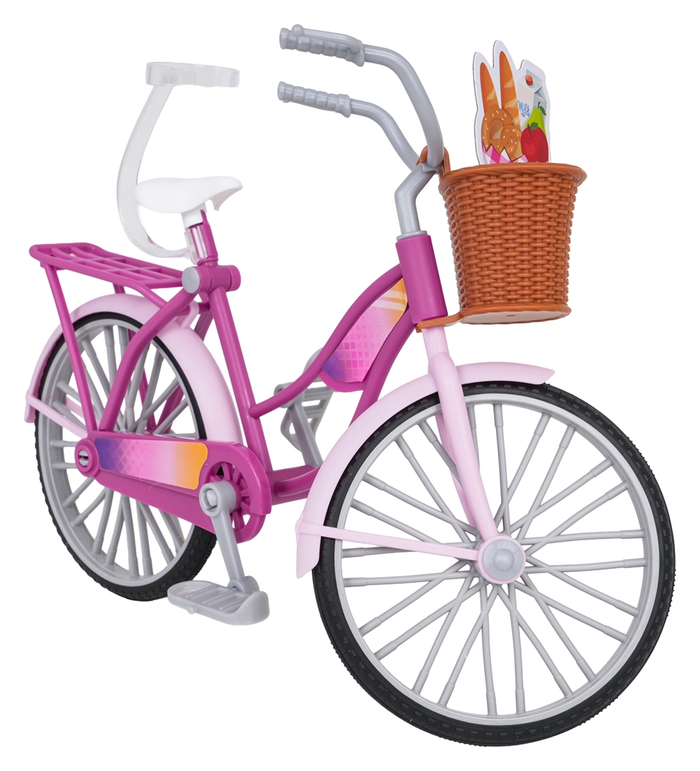 Χαριτωμένο ροζ ποδήλατο για κούκλες που θα ενθουσιάσει τα μικρά παιδιά από 3 ετών. Διαθέτει λεπτομερώς επεξεργασμένο σκελετό, κινούμενους τροχούς, πετάλια και τιμόνι, μπροστινό καλαθάκι για μικροαντικείμενα και πίσω σχάρα. Το σετ περιλαμβάνει επίσης σταντ για σταθερό παρκάρισμα και καπέλο τύπου τζόκεϊ για την κούκλα. Κατασκευασμένο από ποιοτικά υλικά σε ζωηρά χρώματα – ιδανικό ως ευφάνταστο δώρο για μικρούς λάτρεις του παιχνιδιού ρόλων.