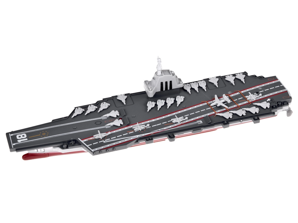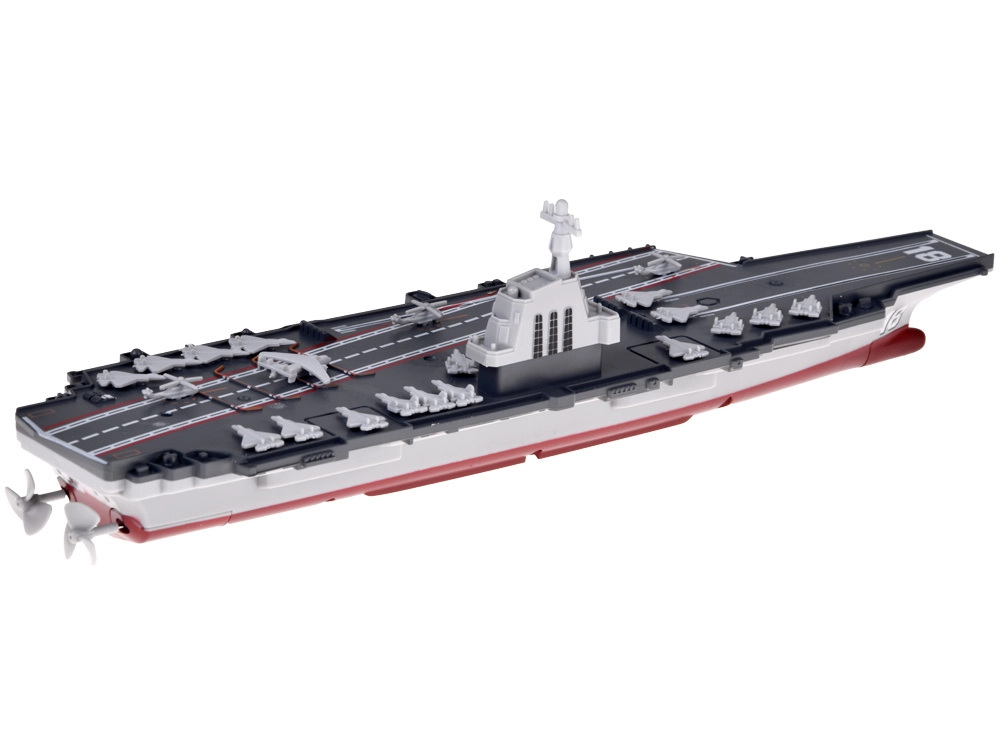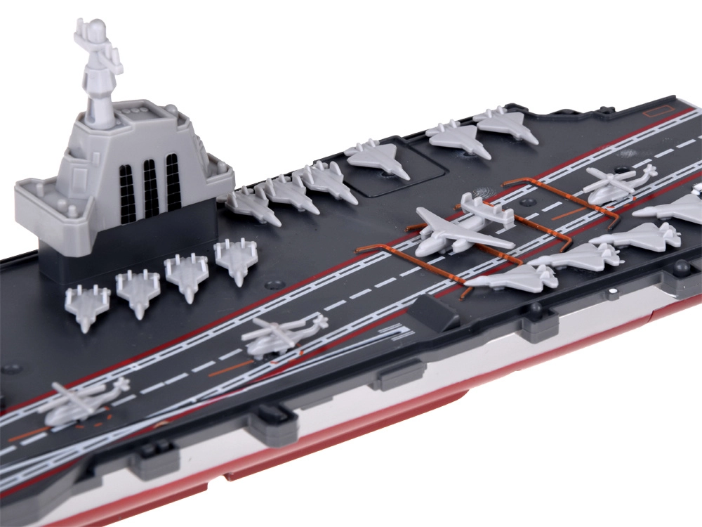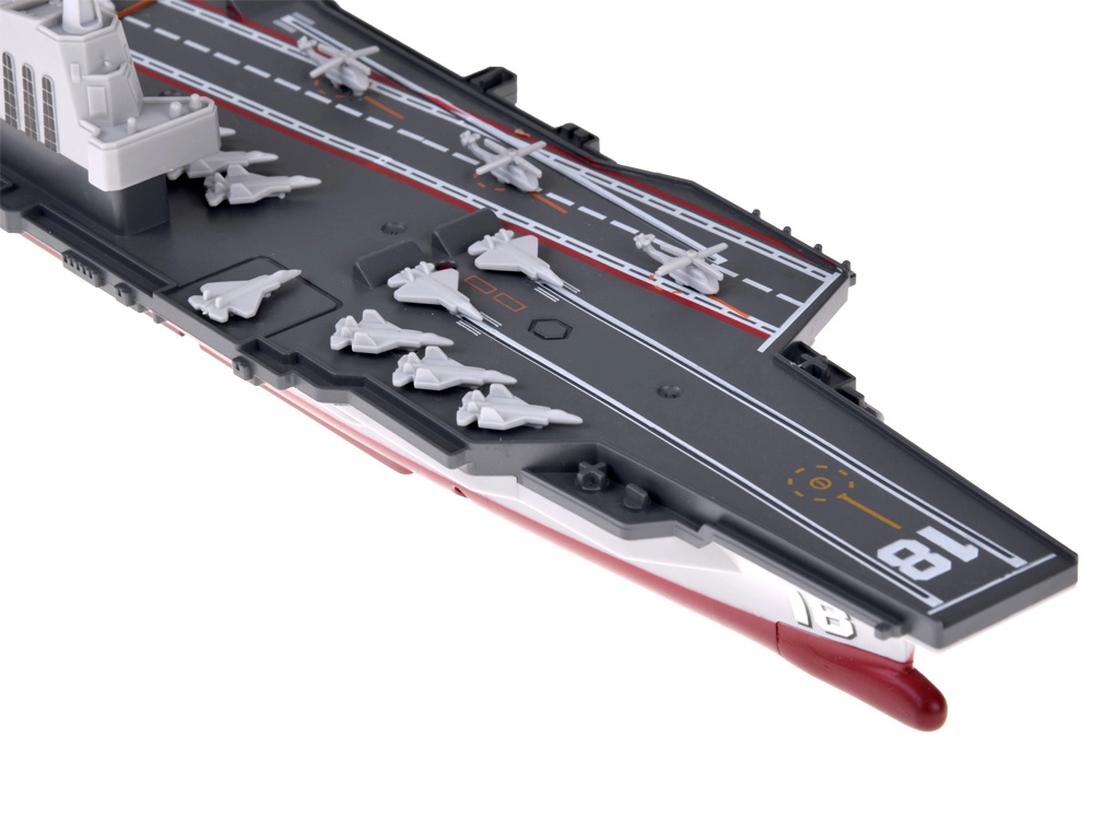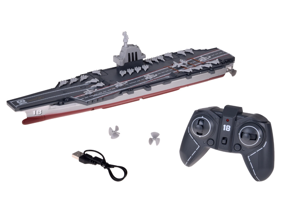 Αυτό το τηλεκατευθυνόμενο αεροπλανοφόρο αναπαράγει πιστά το πραγματικό κατάστρωμα με σημάνσεις διαδρόμων, τον «νησίδα» πύργο και στόλο μίνι αεροσκαφών. Χάρη στο ευανάγνωστο χειριστήριο τύπου gamepad ο χειρισμός είναι διαισθητικός – εμπρός/πίσω, αριστερά/δεξιά – και η φόρτιση USB εξασφαλίζει άνετη χρήση στο σπίτι ή κοντά στο νερό.