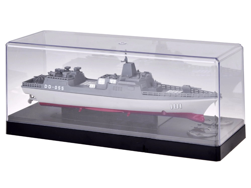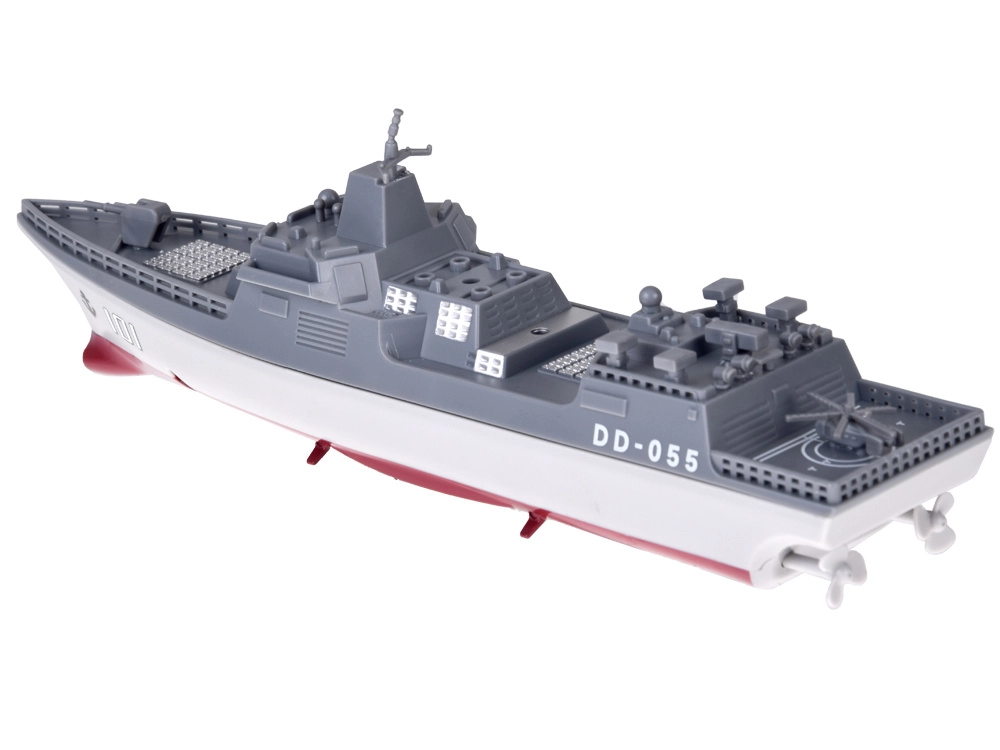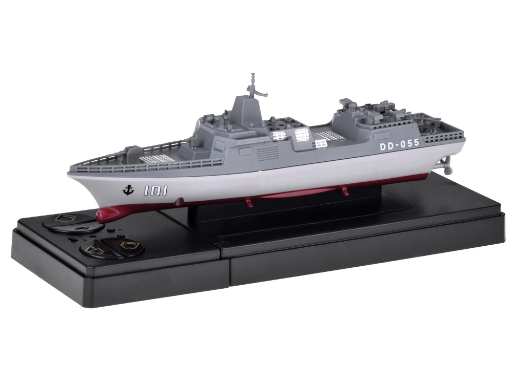 Ανακαλύψτε τη δύναμη των ωκεανών με το RC αντιτορπιλικό DD-055. Το πλοίο σε γκρι-κόκκινο χρωματικό συνδυασμό μιμείται πιστά ένα σύγχρονο πυραυλοφόρο αντιτορπιλικό και εντυπωσιάζει με πλούσιες λεπτομέρειες – από τα στοιχεία του καταστρώματος έως τον χώρο προσγείωσης ελικοπτέρου. Χάρη στο συμπαγές μέγεθος, χειρίζεται υπέροχα και ταυτόχρονα ξεχωρίζει στο ράφι στη μίνι βιτρίνα που περιλαμβάνεται στη συσκευασία.