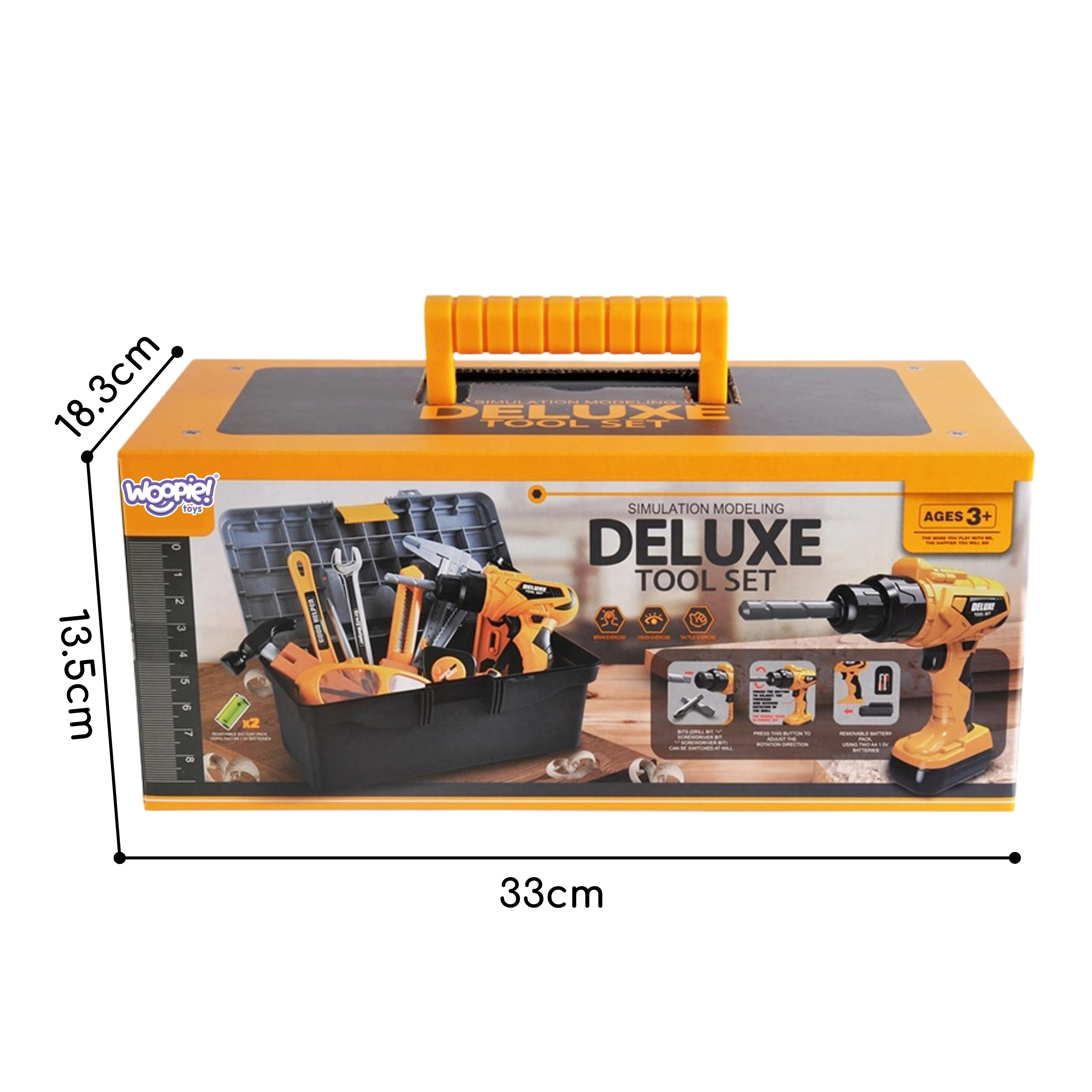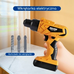 Το σετ εργαλείων για μικρό μάστορα Woopie μετατρέπει κάθε δωμάτιο σε μίνι εργαστήριο. Τα παιδιά μπορούν να μιμούνται τους μεγάλους, να βιδώνουν, να τρυπούν και να συναρμολογούν με την πλούσια σειρά αξεσουάρ. Το ηλεκτρικό επαναφορτιζόμενο τρυπάνι με λειτουργία αλλαγής φοράς περιστροφής και εναλλάξιμα εξαρτήματα (συμπεριλαμβανομένου εξαρτήματος τύπου «πριόνι σπαθοσέγας» και υποδοχής μπιτ) προσθέτει αυθεντικότητα στο παιχνίδι.