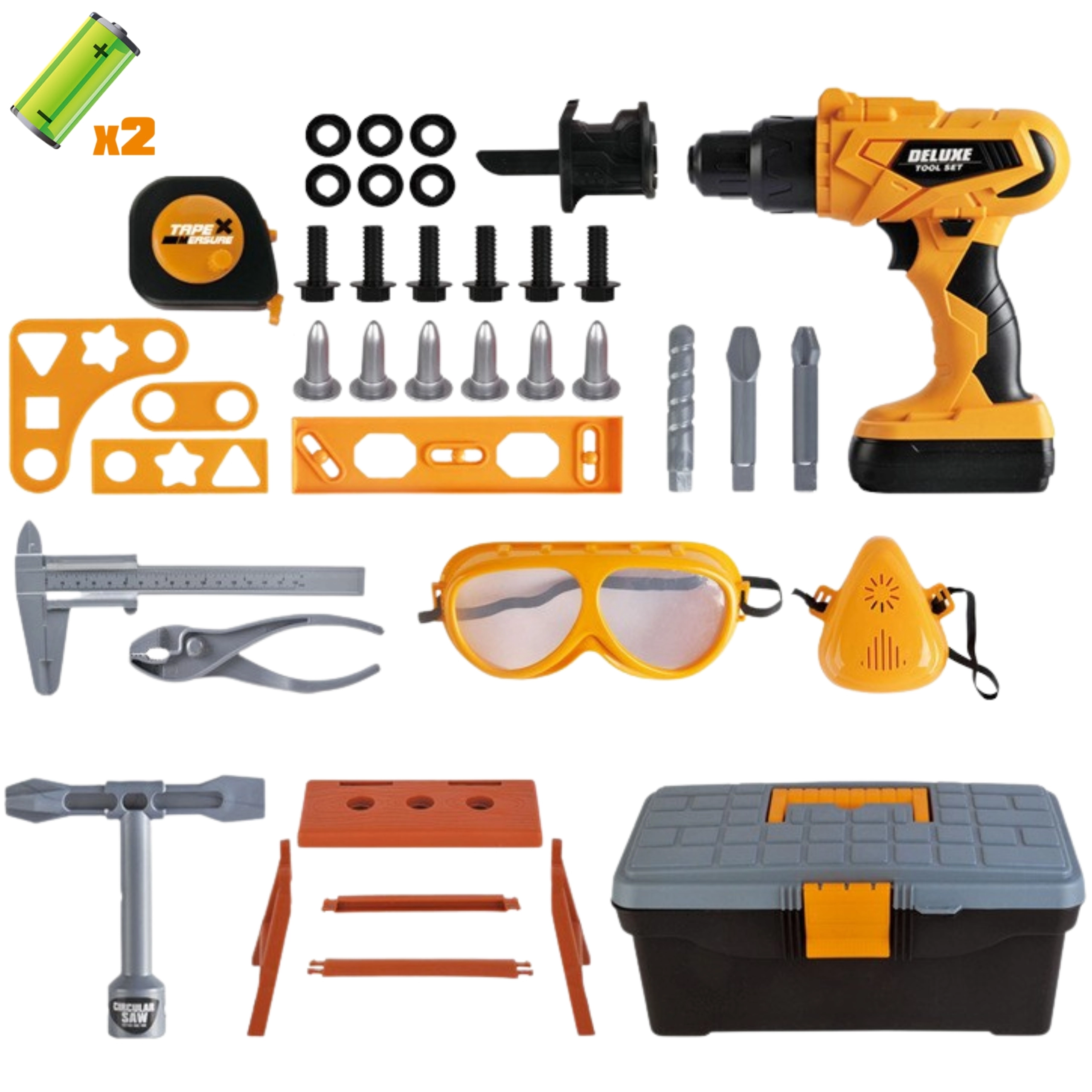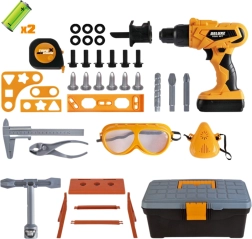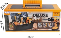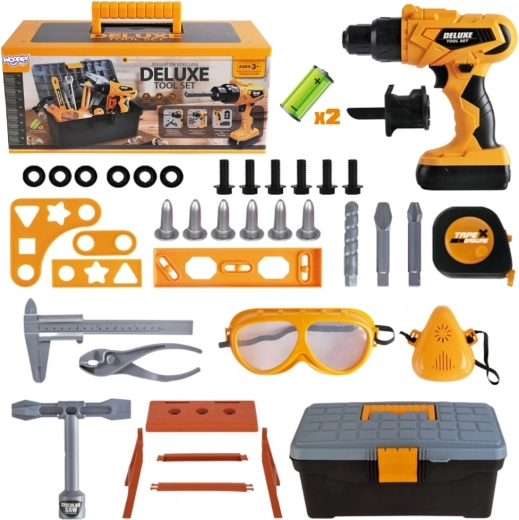 Όλα αποθηκεύονται σε ένα στιβαρό βαλιτσάκι/ντουλαπάκι εργαλείων, που διευκολύνει τη μεταφορά και την οργάνωση. Περιλαμβάνονται επίσης προστατευτικά γυαλιά, βίδες, παξιμάδια, μπιτ, τρυπάνι, συνδετικές πλακέτες, μίνι πάγκος εργασίας και άλλα εργαλεία (κλειδί, μέτρο, πένσα). Το παιχνίδι είναι σχεδιασμένο για παιδιά από 3 ετών και αναπτύσσει τις χειρονακτικές δεξιότητες, τη δημιουργικότητα, τη φαντασία και τον οπτικοκινητικό συντονισμό.