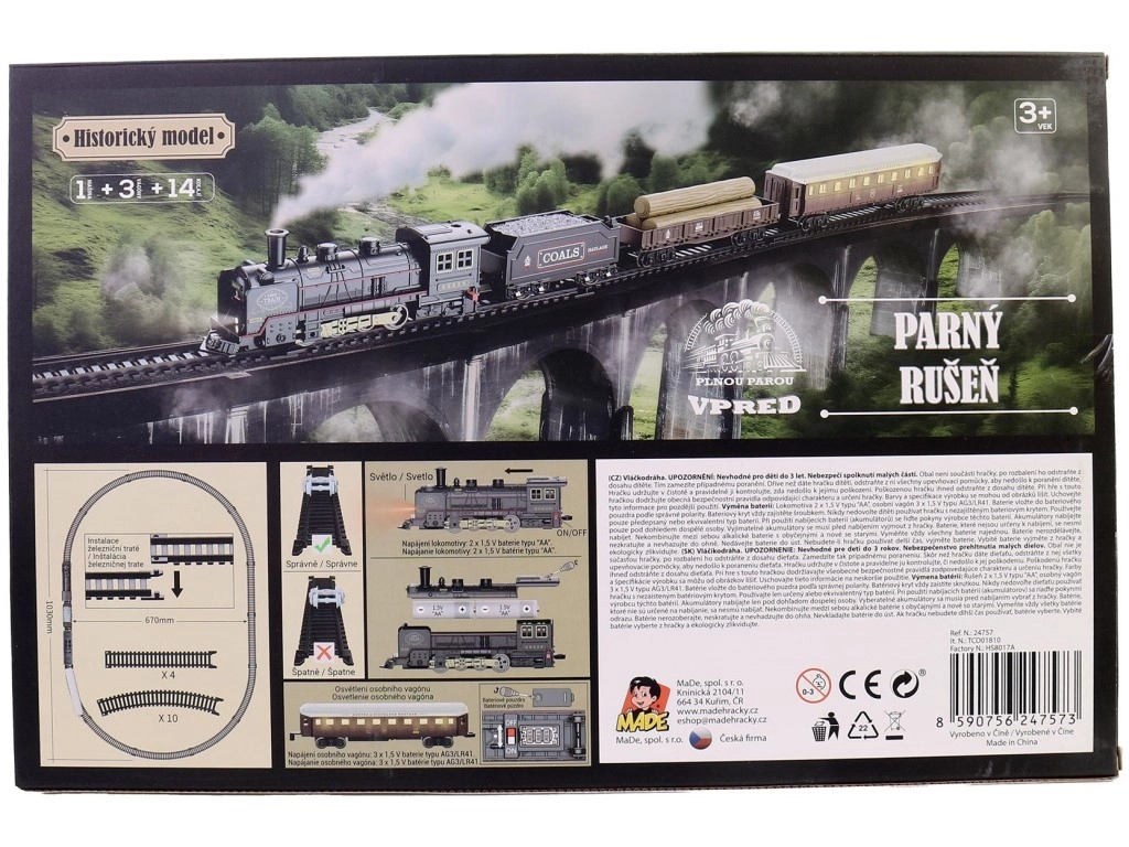 Η ασφαλής πλαστική κατασκευή, η εύκολη σύνδεση των βαγονιών και η τροφοδοσία με μπαταρίες εξασφαλίζουν άνετη χρήση χωρίς καλώδια. Τα τρενάκια έχουν λεπτομερή κατασκευή και ομαλή κίνηση πάνω στις ράγες, γεγονός που αναπτύσσει τη φαντασία, τη λεπτή κινητικότητα και τη λογική σκέψη.