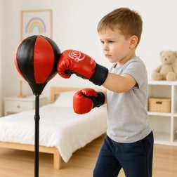 Το παιδικό σετ πυγμαχίας είναι ιδανικό για τις πρώτες προπονήσεις στο σπίτι. Η μπάλα σε ελατήριο επανέρχεται μετά από κάθε χτύπημα στην αρχική θέση, κάνοντας την προπόνηση δυναμική, διασκεδαστική και ασφαλή. Χάρη στην ομαλή ρύθμιση ύψους 70–104 cm το σετ «μεγαλώνει» με το παιδί και ταιριάζει σε προσχολικά αλλά και μεγαλύτερα παιδιά.
