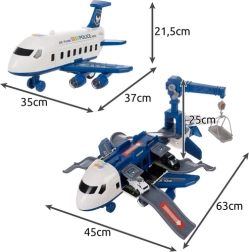 Το αναδιπλούμενο αστυνομικό αεροσκάφος φέρνει στα παιδιά τον συναρπαστικό κόσμο των σωστικών υπηρεσιών σε ένα παιχνίδι. Με το άνοιγμα μετατρέπεται σε προσεγμένο πάρκινγκ με διερχόμενες ράμπες, γκαράζ και διασκεδαστικές λειτουργίες. Χάρη στα φωτεινά και ηχητικά εφέ και την κίνηση στους πίσω τροχούς, τα παιδιά απολαμβάνουν ρεαλιστικό παιχνίδι γεμάτο καταδιώξεις και αποστολές διάσωσης.