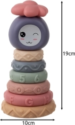 Χάρη στο μαλακό και εύκαμπτο υλικό, τα τουβλάκια είναι κατάλληλα και για την περίοδο ανατολής των δοντιών. Ορισμένα στοιχεία όταν πιέζονται σφυρίζουν, διεγείροντας την ακοή και αυξάνοντας το ενδιαφέρον του παιδιού για παιχνίδι. Η πρακτική συσκευασία δώρου με παράθυρο είναι μια όμορφη ιδέα για δώρο και ταυτόχρονα προστατεύει το παιχνίδι κατά τη μεταφορά.