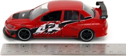 Αυτή η premium διπλή συσκευασία φέρνει τα εμβληματικά κινηματογραφικά αυτοκίνητα σε εντυπωσιακή εκτέλεση: κόκκινο Lancer Evo IX με αγωνιστικά γραφικά και έντονη αεροτομή και ασημί Skyline GT‑R R34 με μπλε ρίγες. Το μεταλλικό αμάξωμα, οι ρεαλιστικές λεπτομέρειες και οι λειτουργικές πόρτες απογειώνουν την εμπειρία συλλογής και παιχνιδιού.