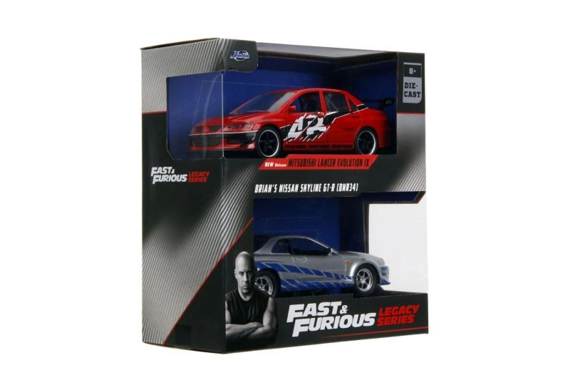 Αποκτήστε ταυτόχρονα το Mitsubishi Lancer Evo IX 2006 και το Nissan Skyline GT‑R R34 του Brian – το εμβληματικό δίδυμο από το Fast & Furious σε κλίμακα 1:32.